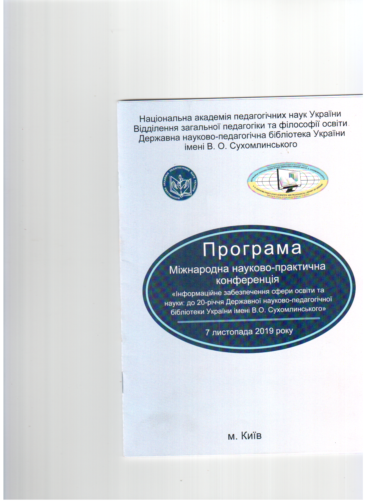 | 4628 | Інформаційне забезпечення сфери освіти та науки: до 20-річчя Державної науково-педагогічної бібліотеки України імені В.О. Сухомлинського | Розвиток шкільної освіти в Київській губернії у ХІХ-на початку ХХ ст:джерелознавчий аспект | Київ |
