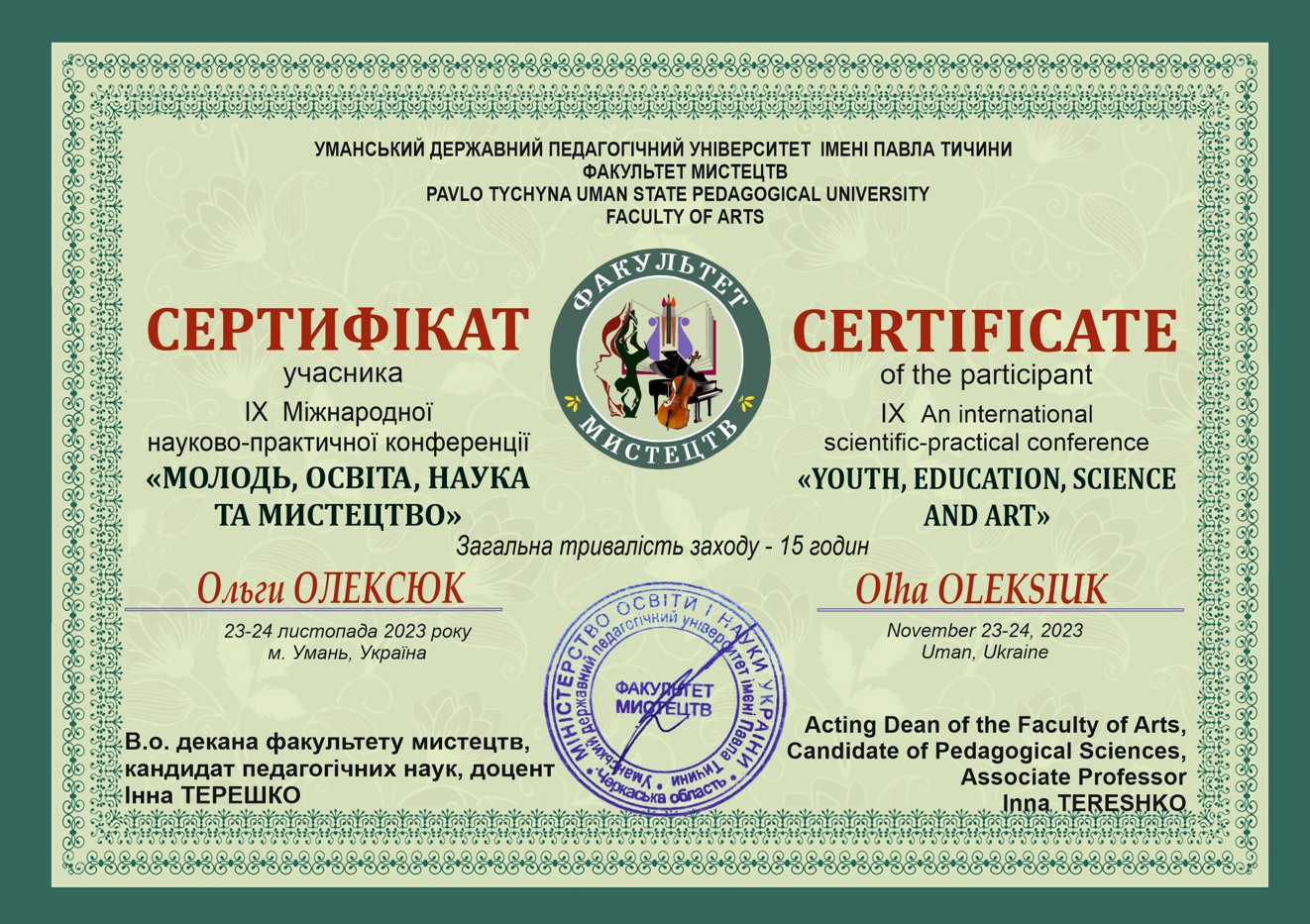 Всеукраїнська науково-практична конференція з міжнародною участю "Естетичні засади розвитку педагогічної майстерності викладачів мистецьких дисциплін""