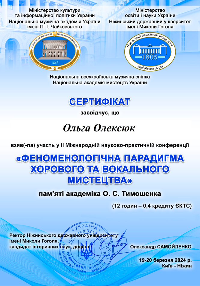 VII Міжнародна науково-практична конференція молодих учених та студентів "Музична та хореографічна освіта в контексті культурного розвитку суспільства"