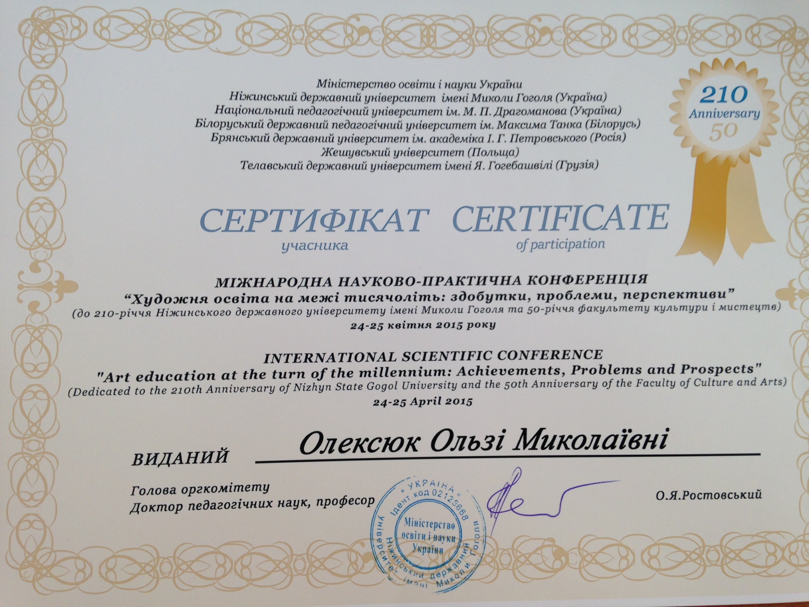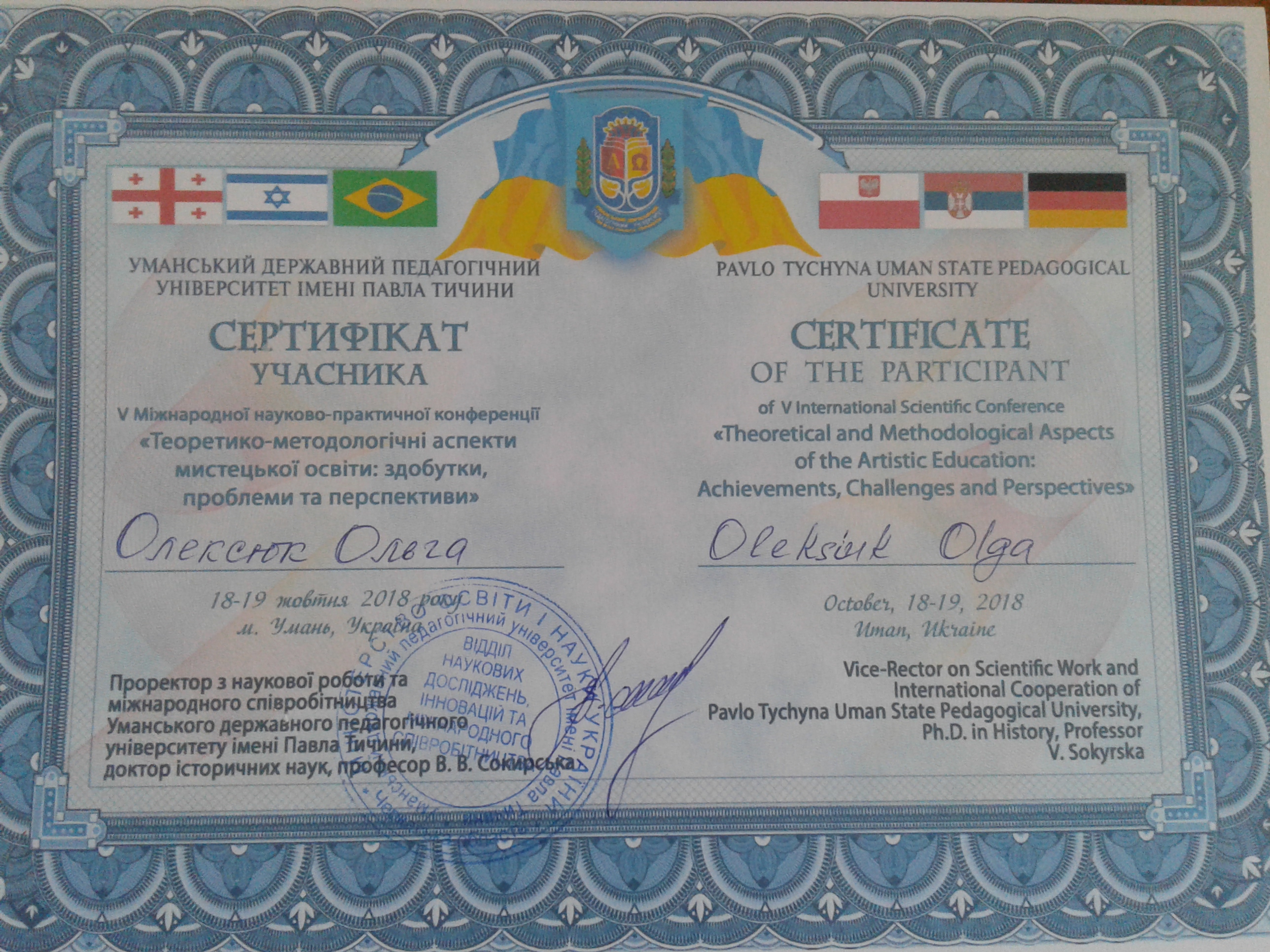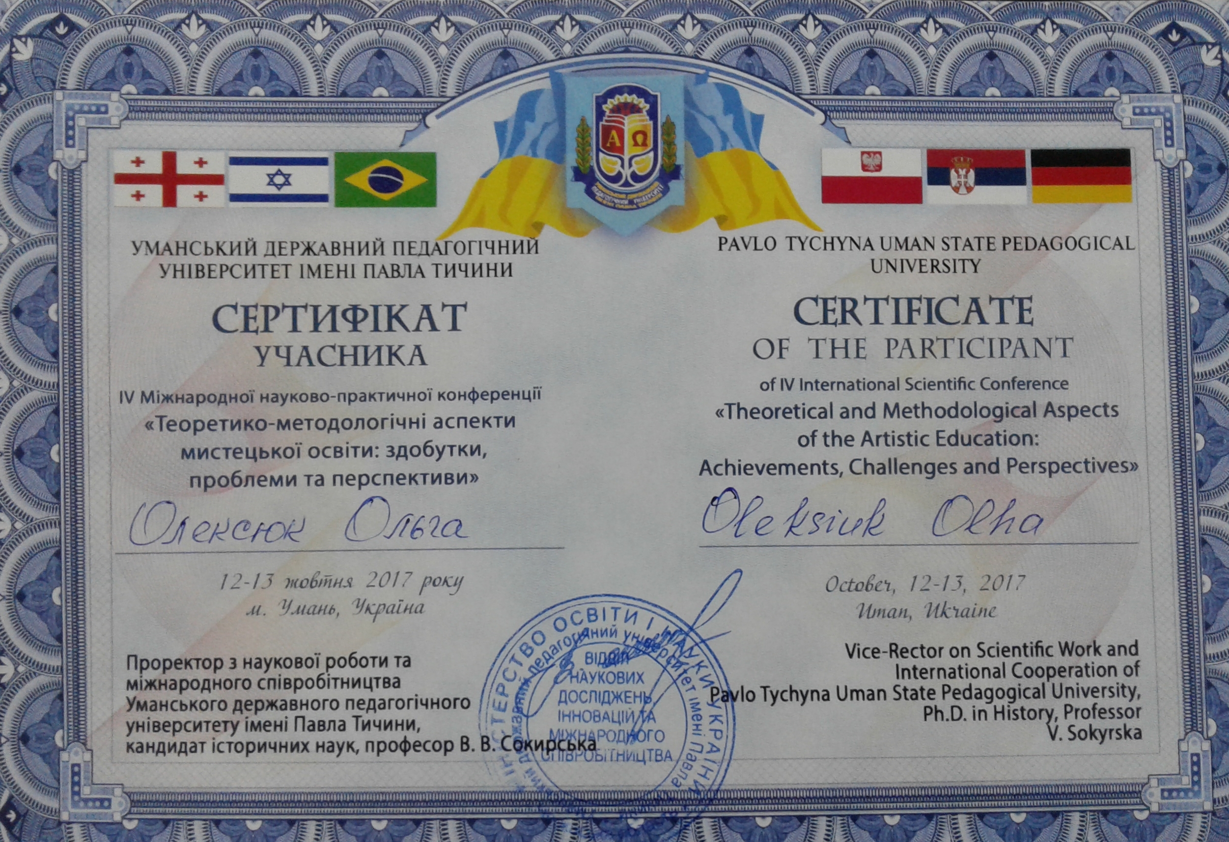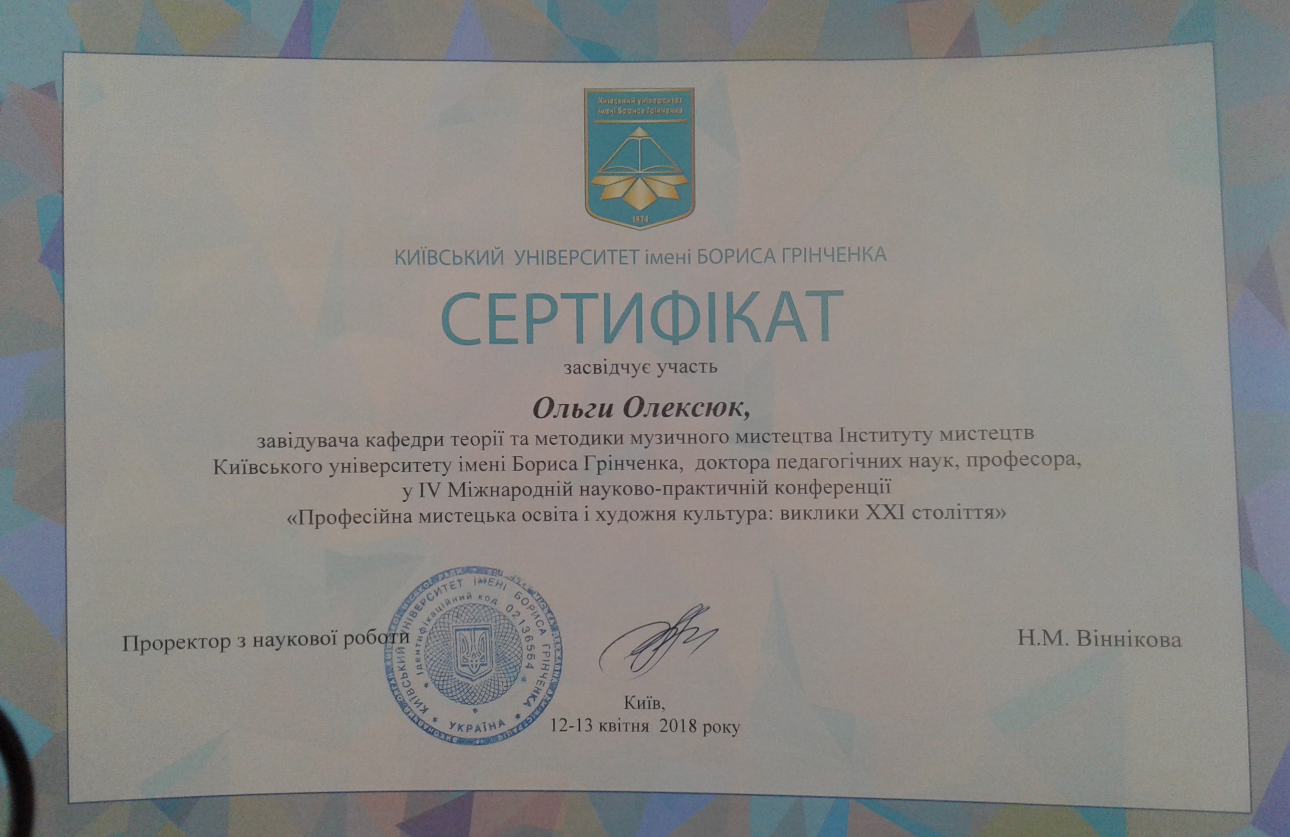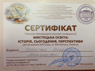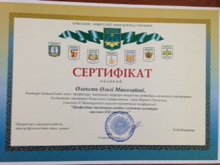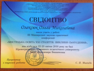2 майстер-класи (4 години) у рамках IV Міжнародної науково-практичної конференції "Мистецька освіта в європейському соціокультурному просторі ХХІ століття"