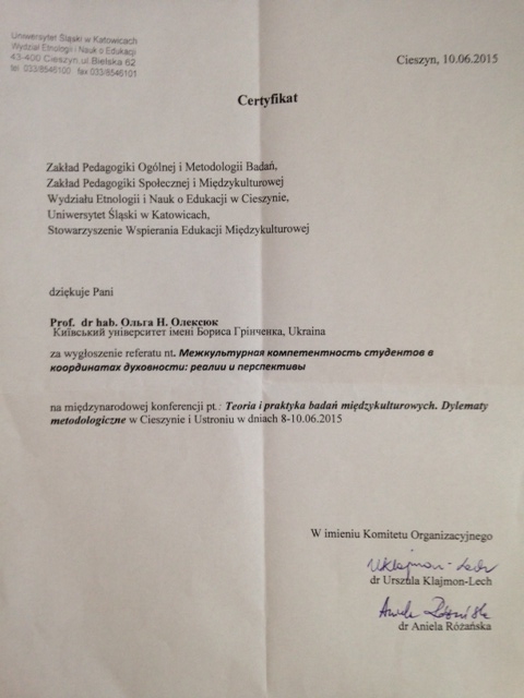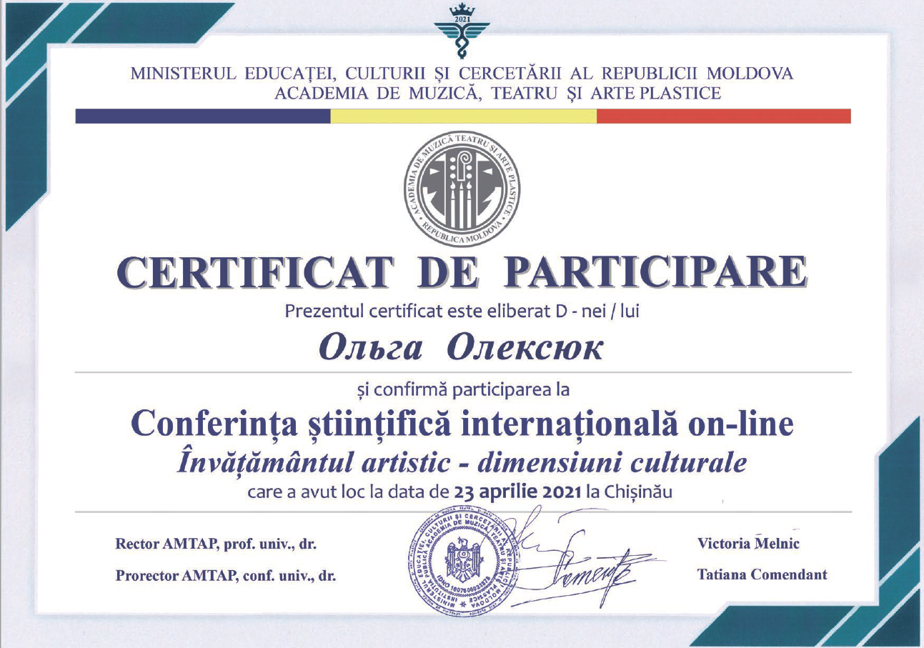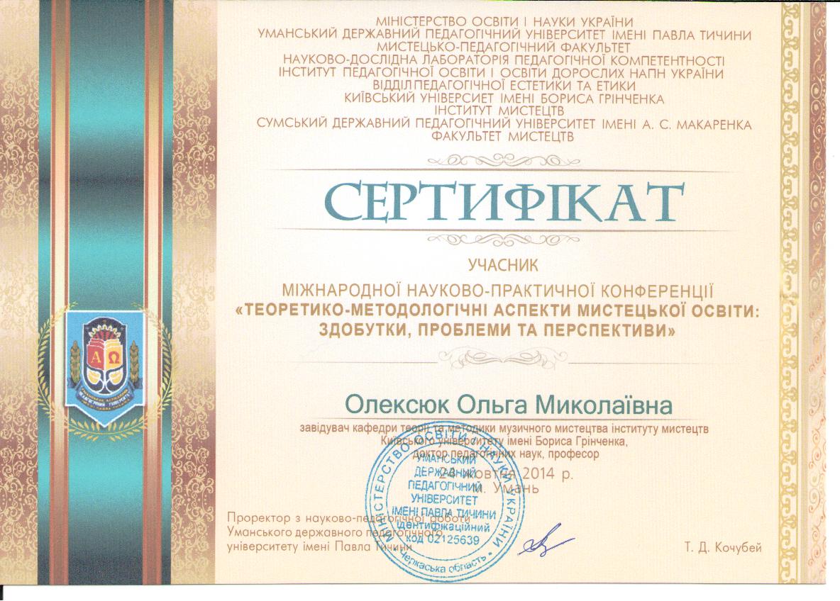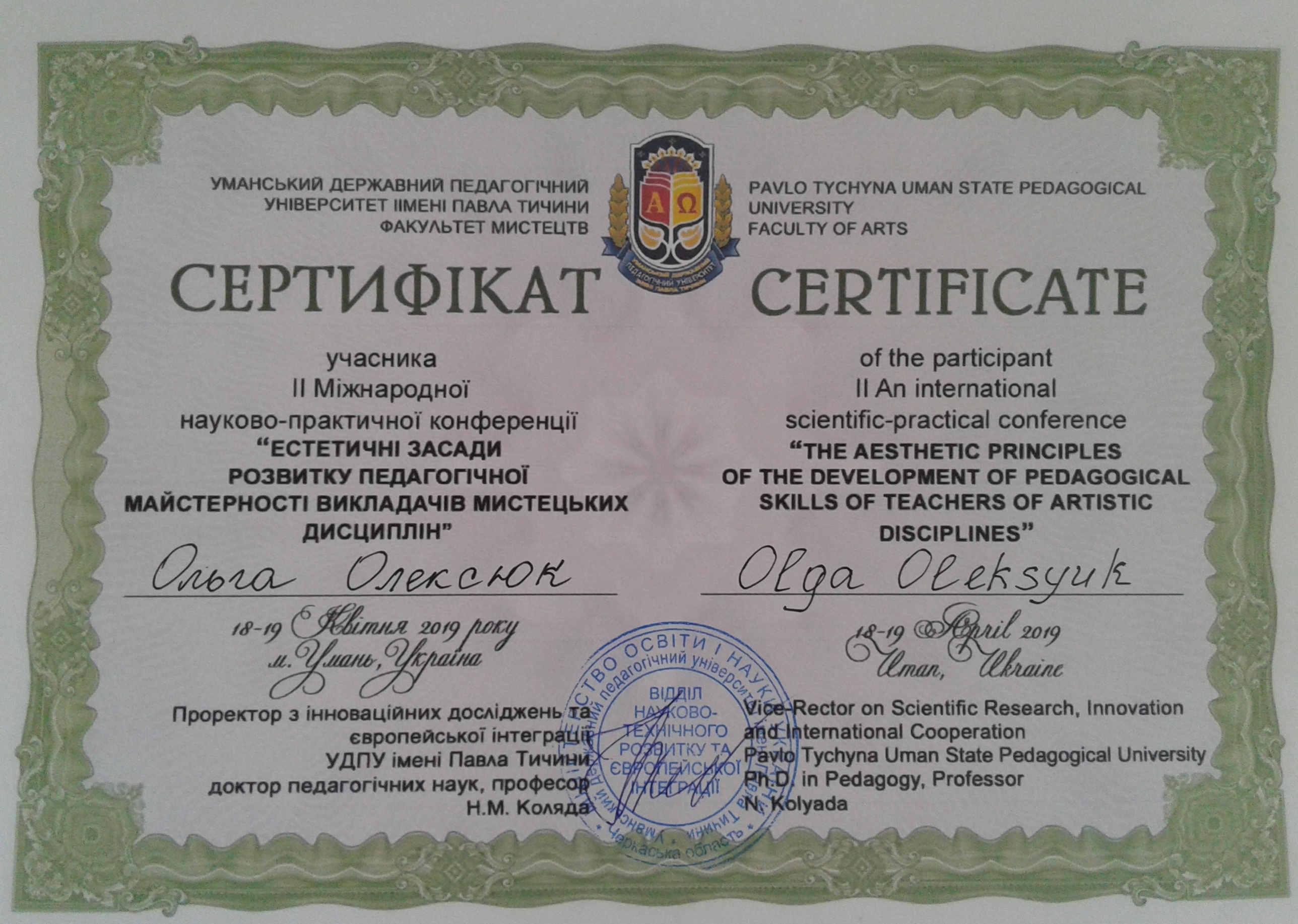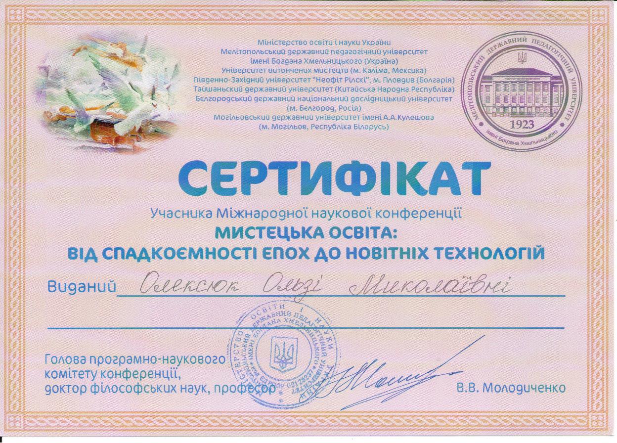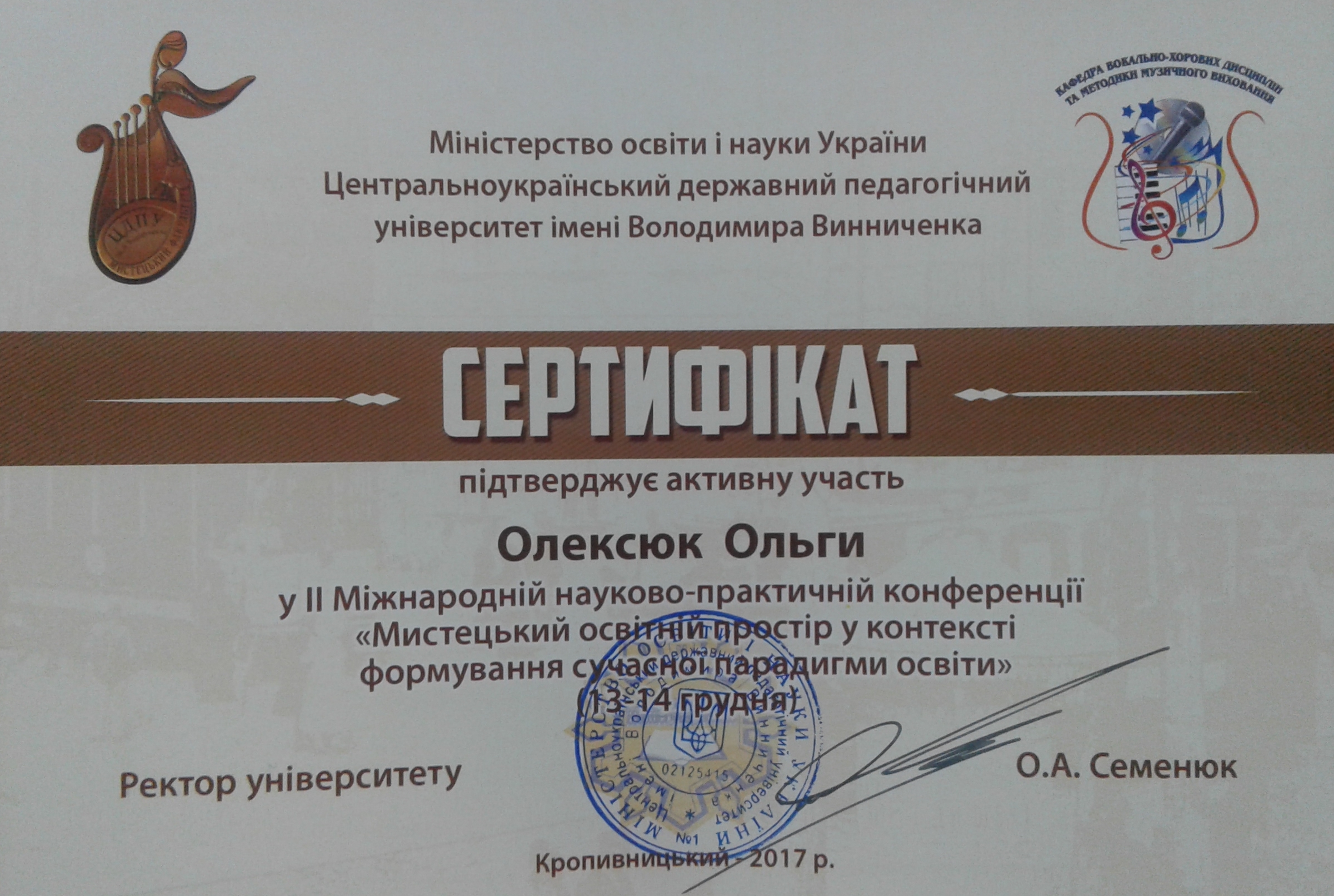 2 майстер-класи (4 години) у рамках IV Міжнародної науково-практичної конференції "Мистецька освіта в європейському соціокультурному просторі ХХІ століття"
