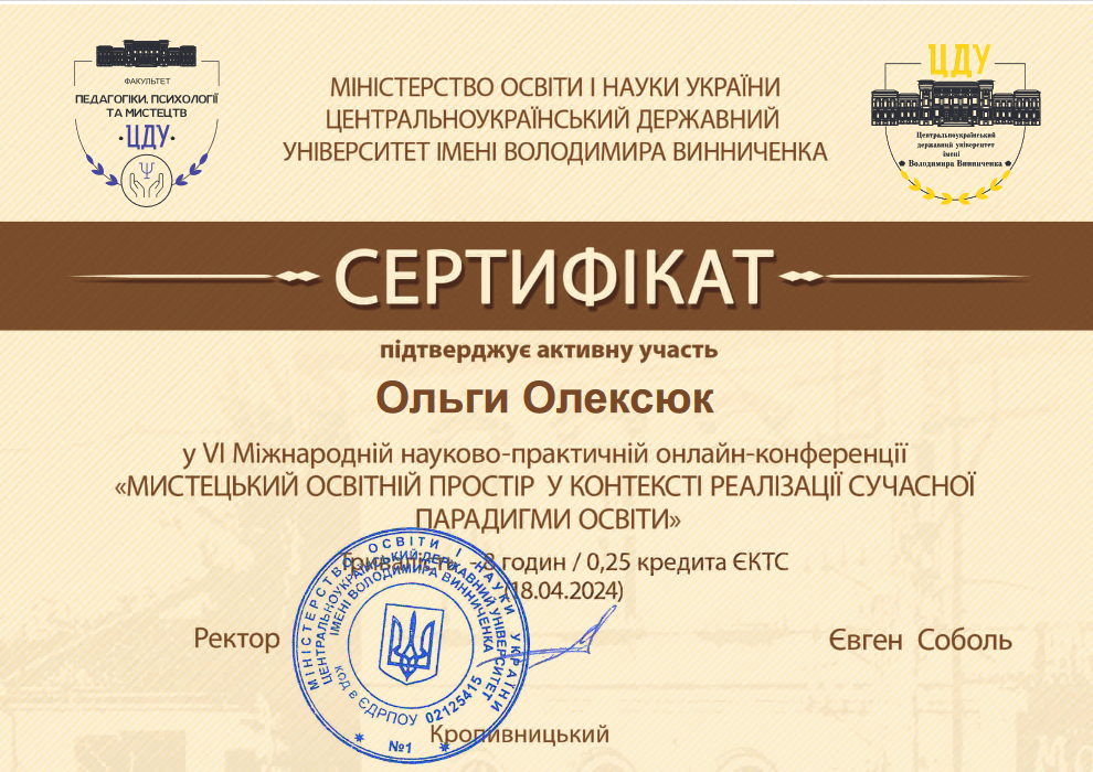м. Кропивницький, ЦЕНТРАЛЬНОУКРАЇНСЬКИЙ ДЕРЖАВНИЙ ПЕДАГОГІЧНИЙ УНІВЕРСИТЕТ імені ВОЛОДИМИРА ВИННИЧЕНКА