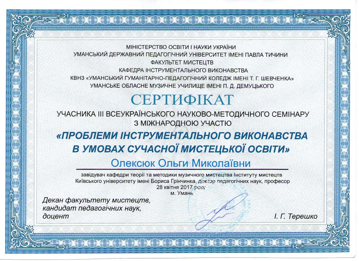 ІІІ Всеукраїнський науково-методичний семінар з міжнародною участю "Проблеми інструментального виконавстка в умовах сучасної мистецької освіти"