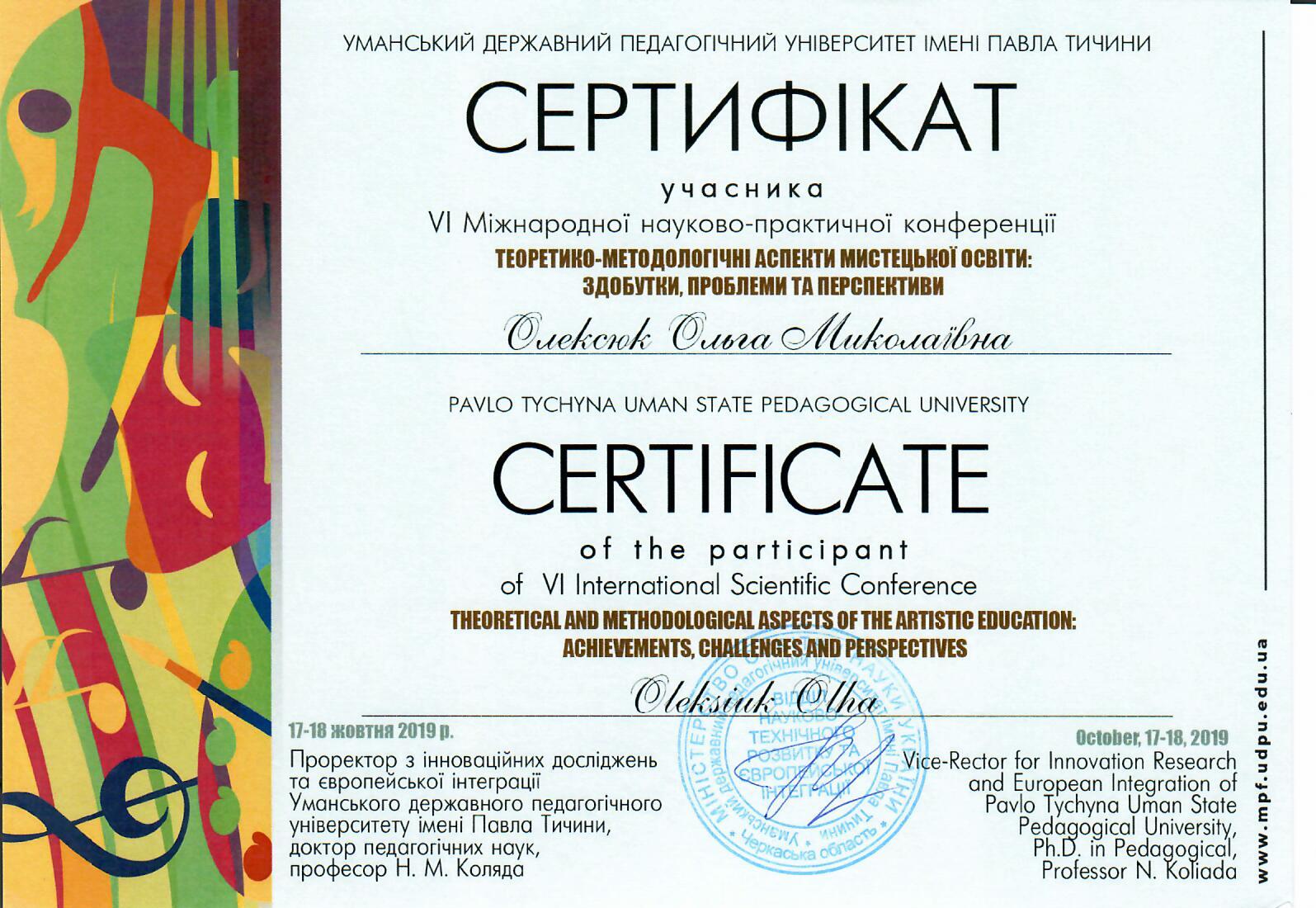 VI Міжнародна науково-практична конференція "Теоретико-методологічні аспекти мистецької освіти: здобутки, проблеми та перспективи"