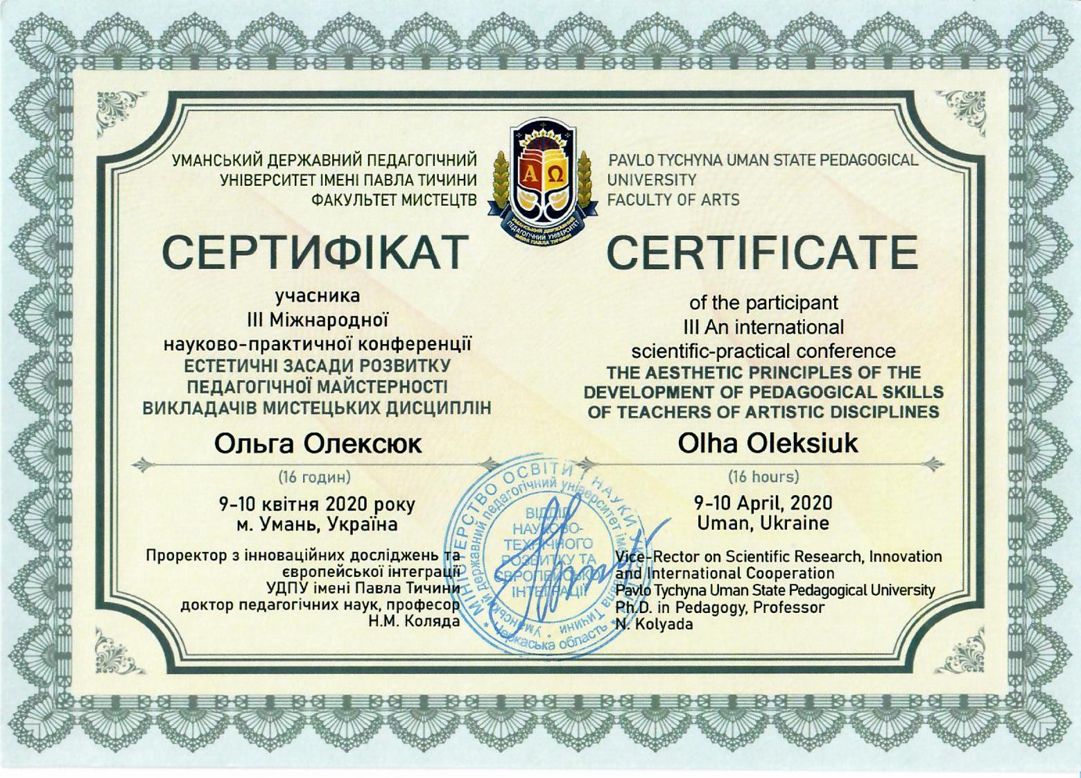 ІІІ Міжнародна науково-практична конференція "Естетичні засади розвитку педагогічної майстерності викладачів мистецьких дисциплін"