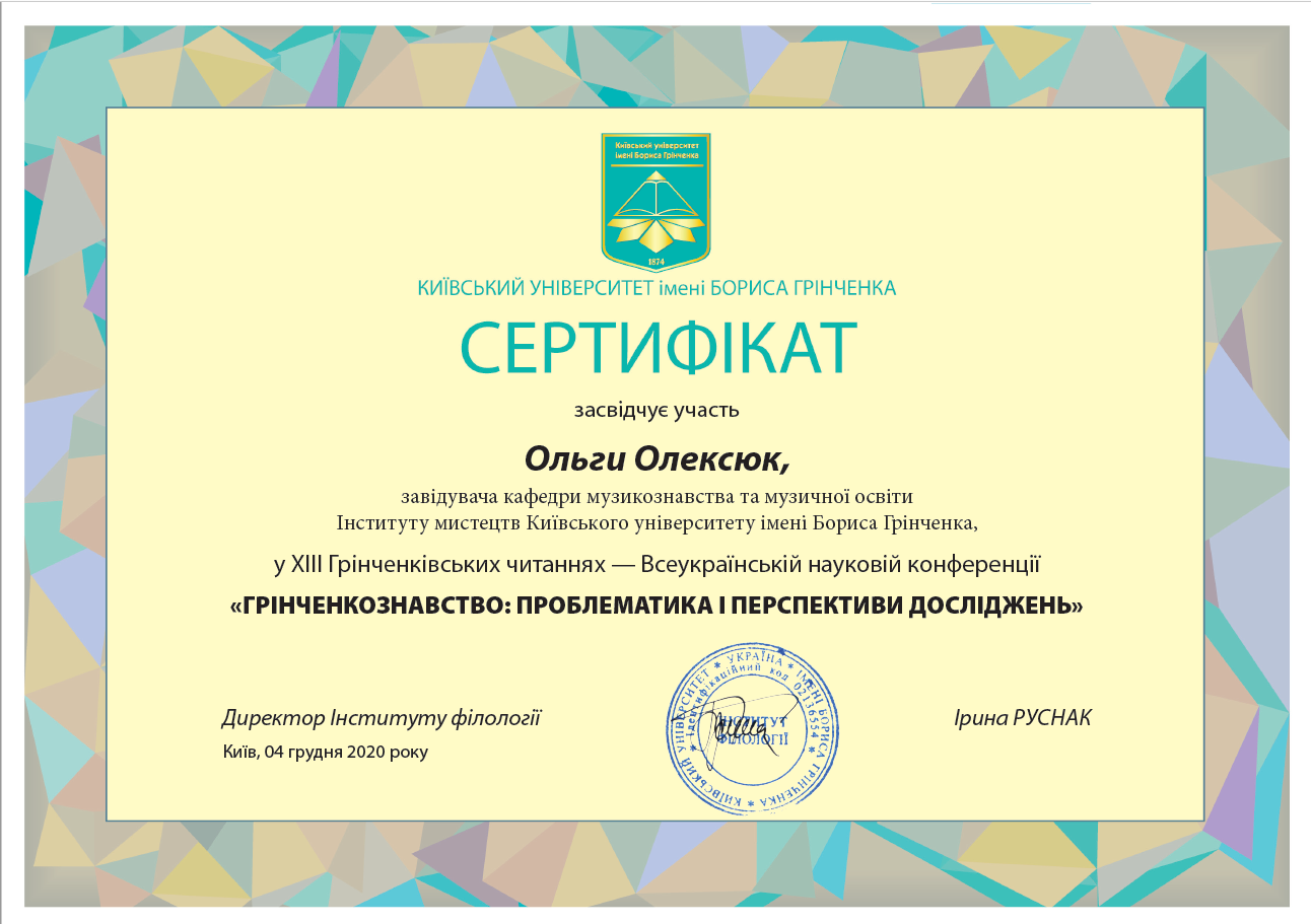 Грінченкознавчі практики у вимірах вищої мистецької освіти