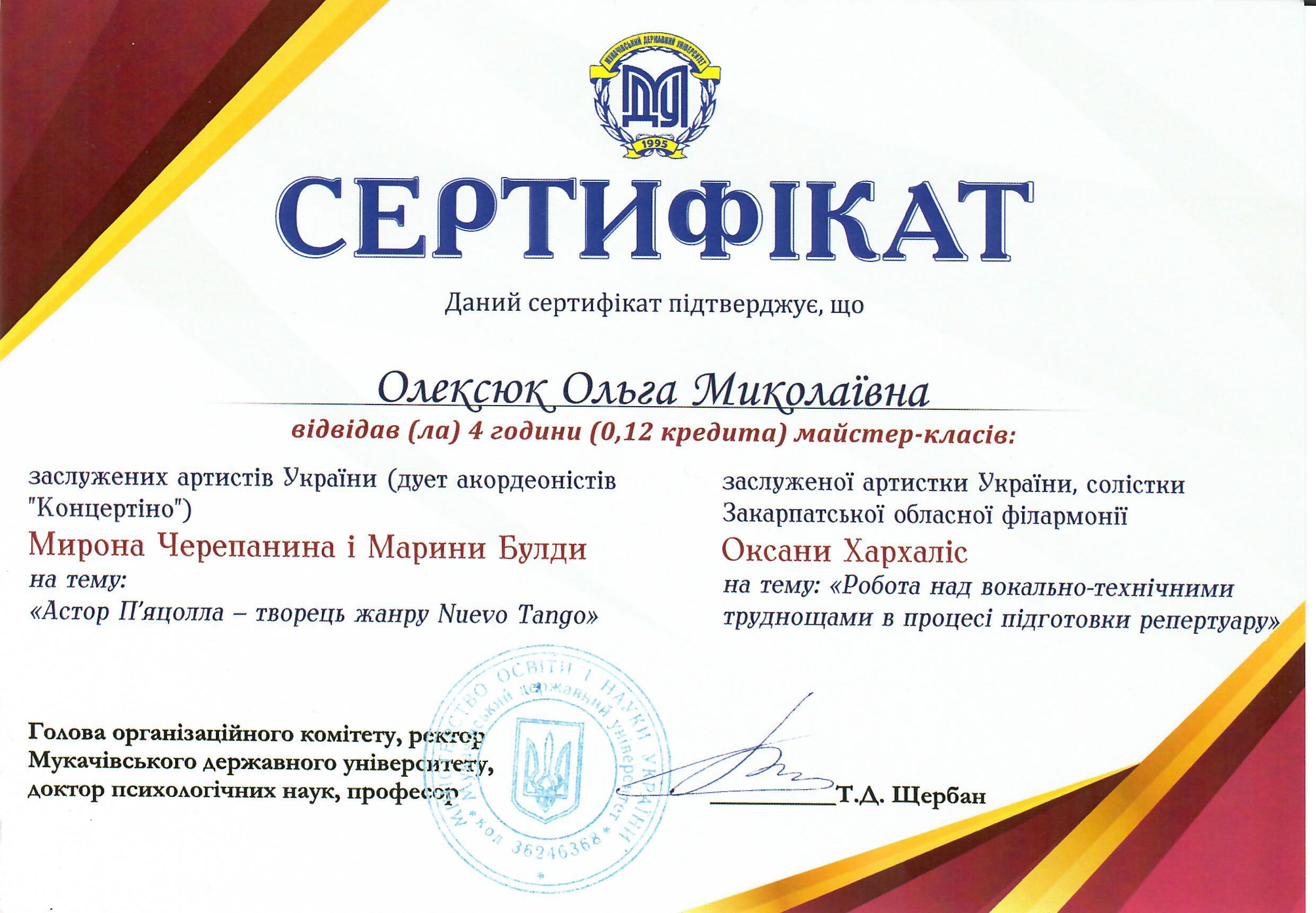 "Астор П'яцола - творець жанру Nuevo Tango"; "Робота над вокально-технічними труднощами в процесі підготовки репертуару"