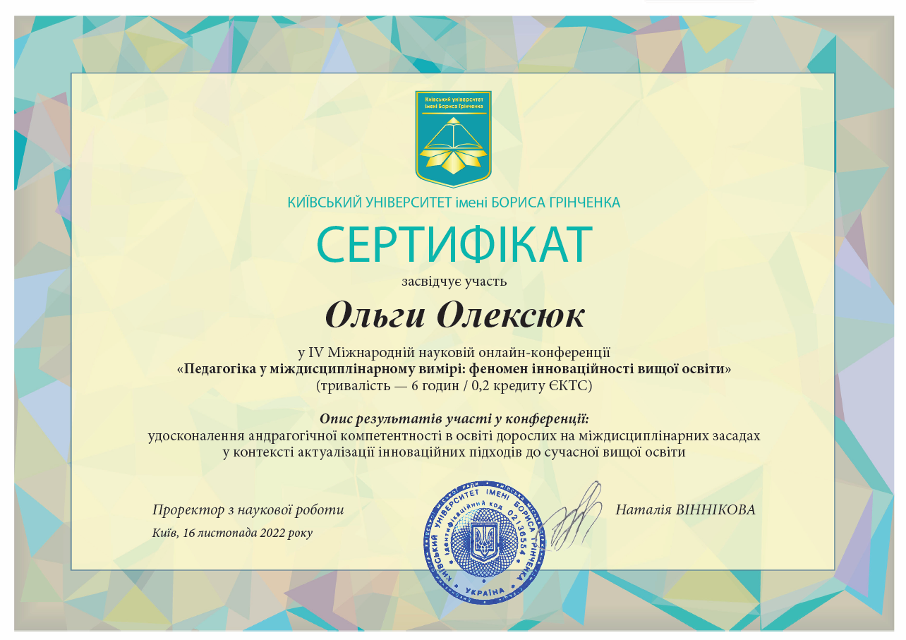 ІІІ Міжнародна наукова онлайн-конференція "ПЕДАГОГІКА У МІЖДИСЦИПЛІНАРНОМУ ВИМІРІ: АНДРАГОГІЧНІ ЗАСАДИ СУЧАСНОЇ ВИЩОЇ ОСВІТИ"