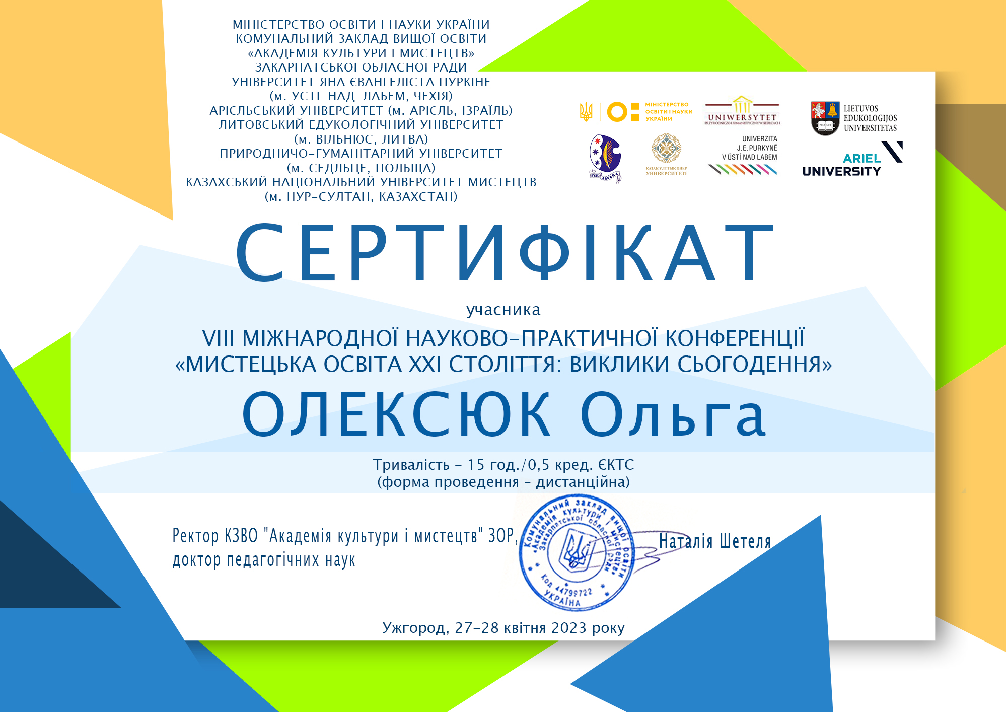 ІІІ Міжнародна наукова-практична конференція "Мистецький освітній простір у контексті формування сучасної парадигми освіти"