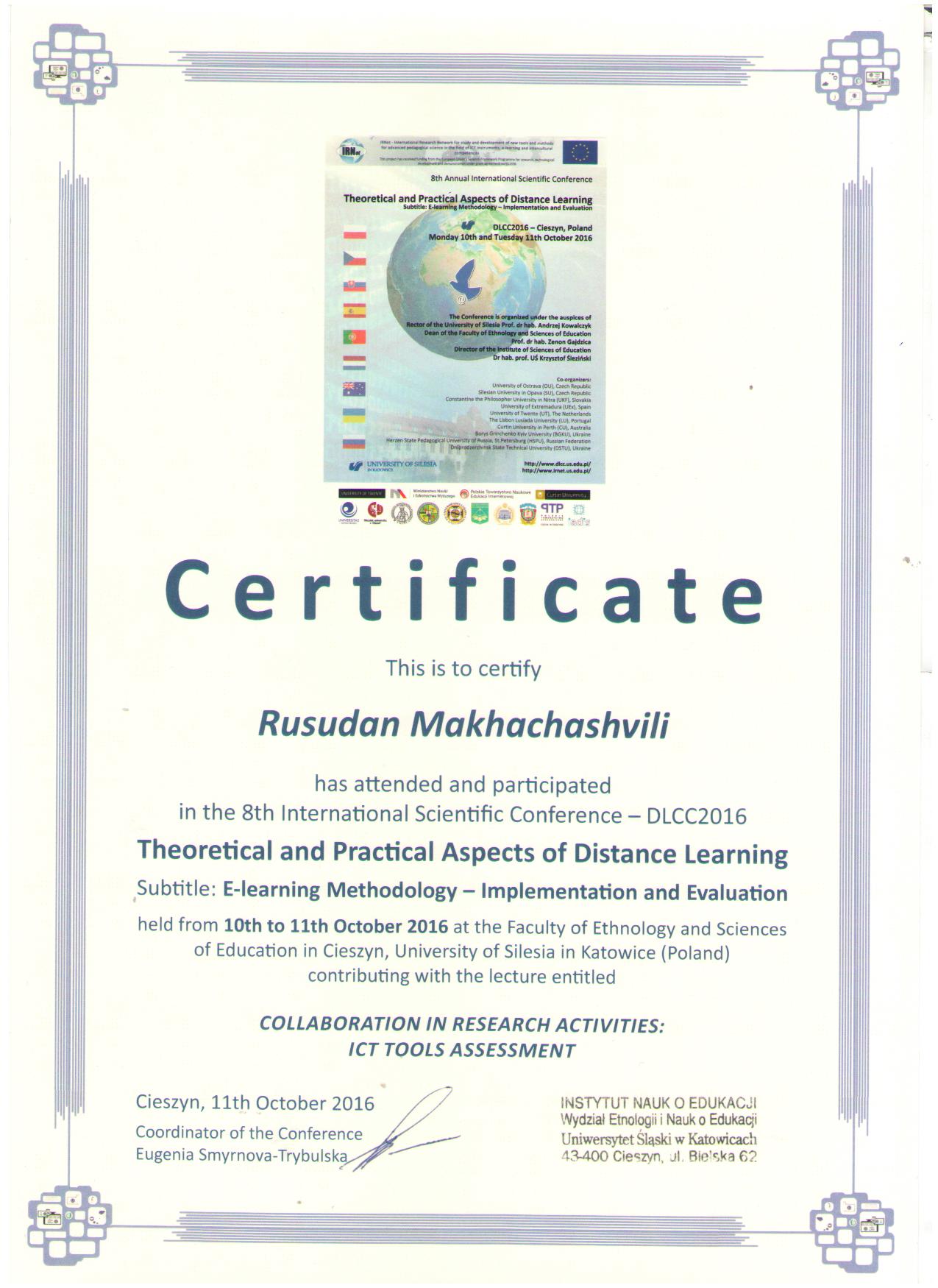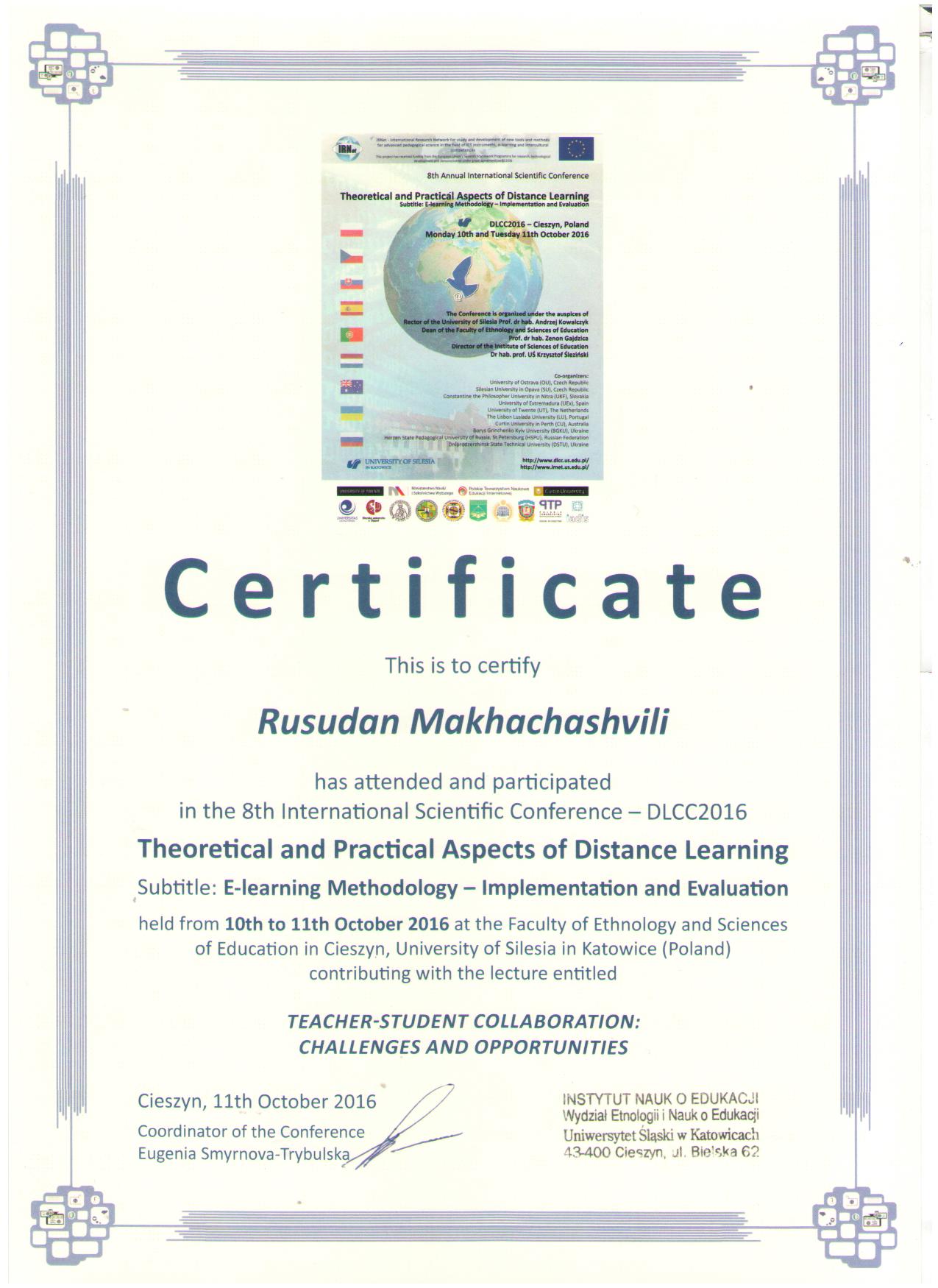 | 6525 | 19th International Conference eSociety 2021 | STUDENT SATISFACTION WITH DIGITAL HYBRID LEARNING IN EUROPEAN AND ORIENTAL LANGUAGES PROGRAMS: SURVEY STUDY OF REGIONAL UNIVERSITIES OF UKRAINE | IAISD, Нідерланди | document.pdf | |