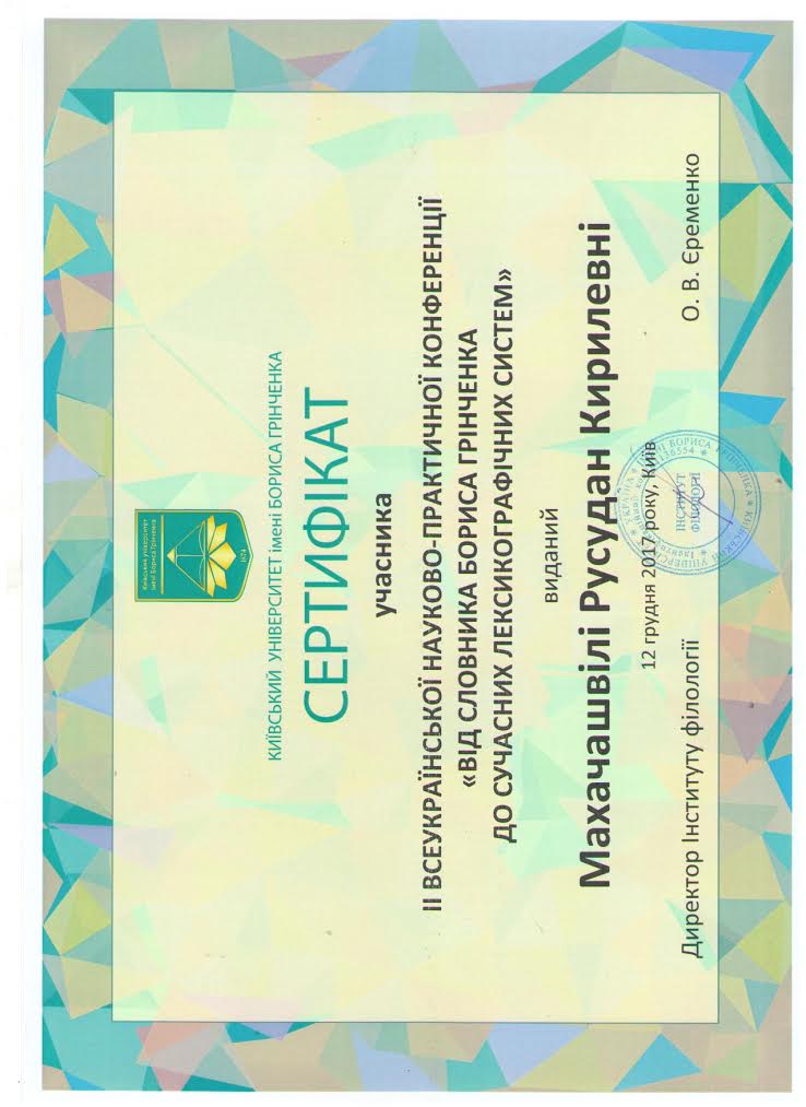 | 37 | Факультет романо-германської філології | Кафедра германської філології | 827.1 | 6 | 2025 | https://www.researchgate.net/profile/Rusudan_Makhachashvili |