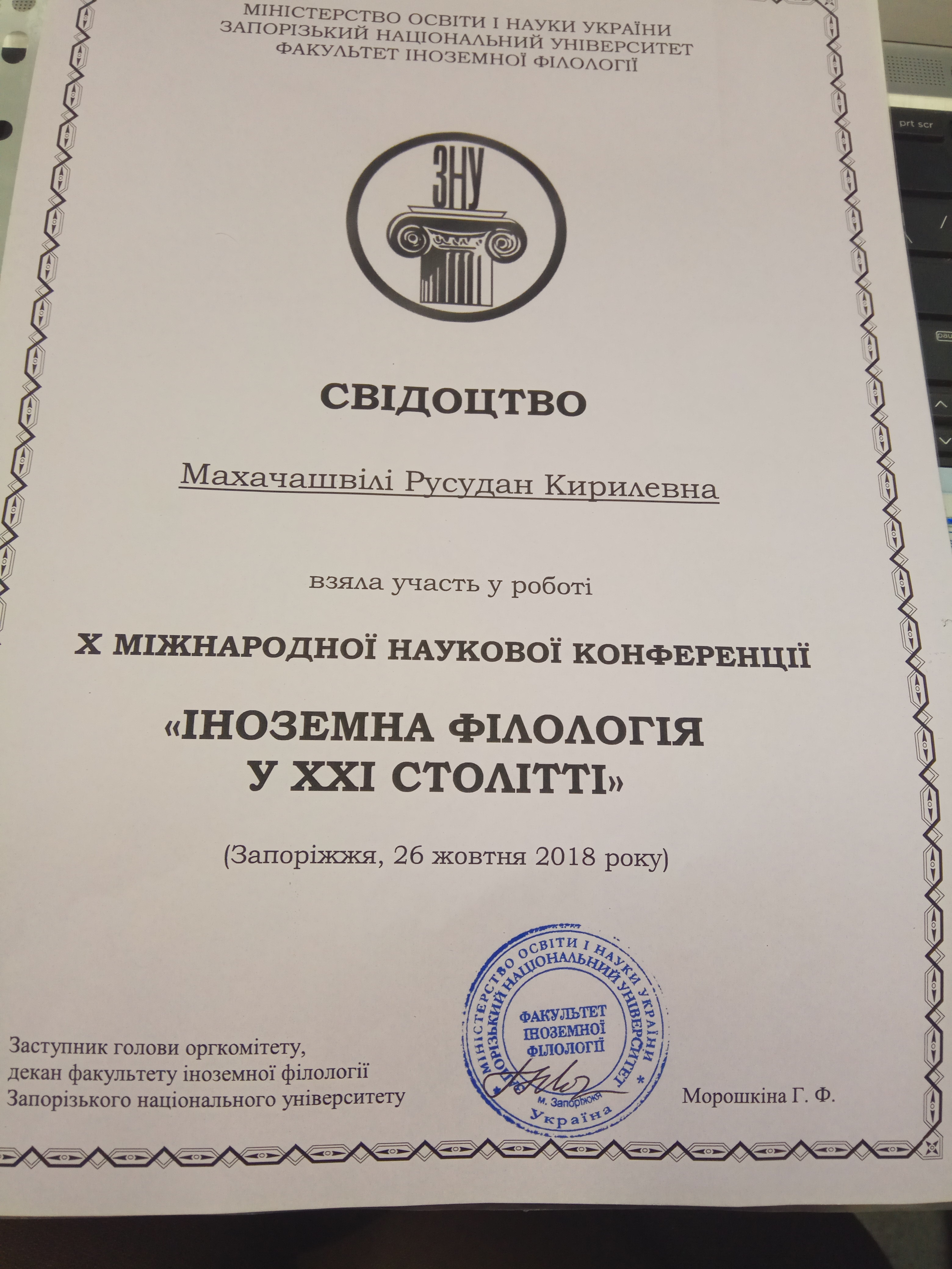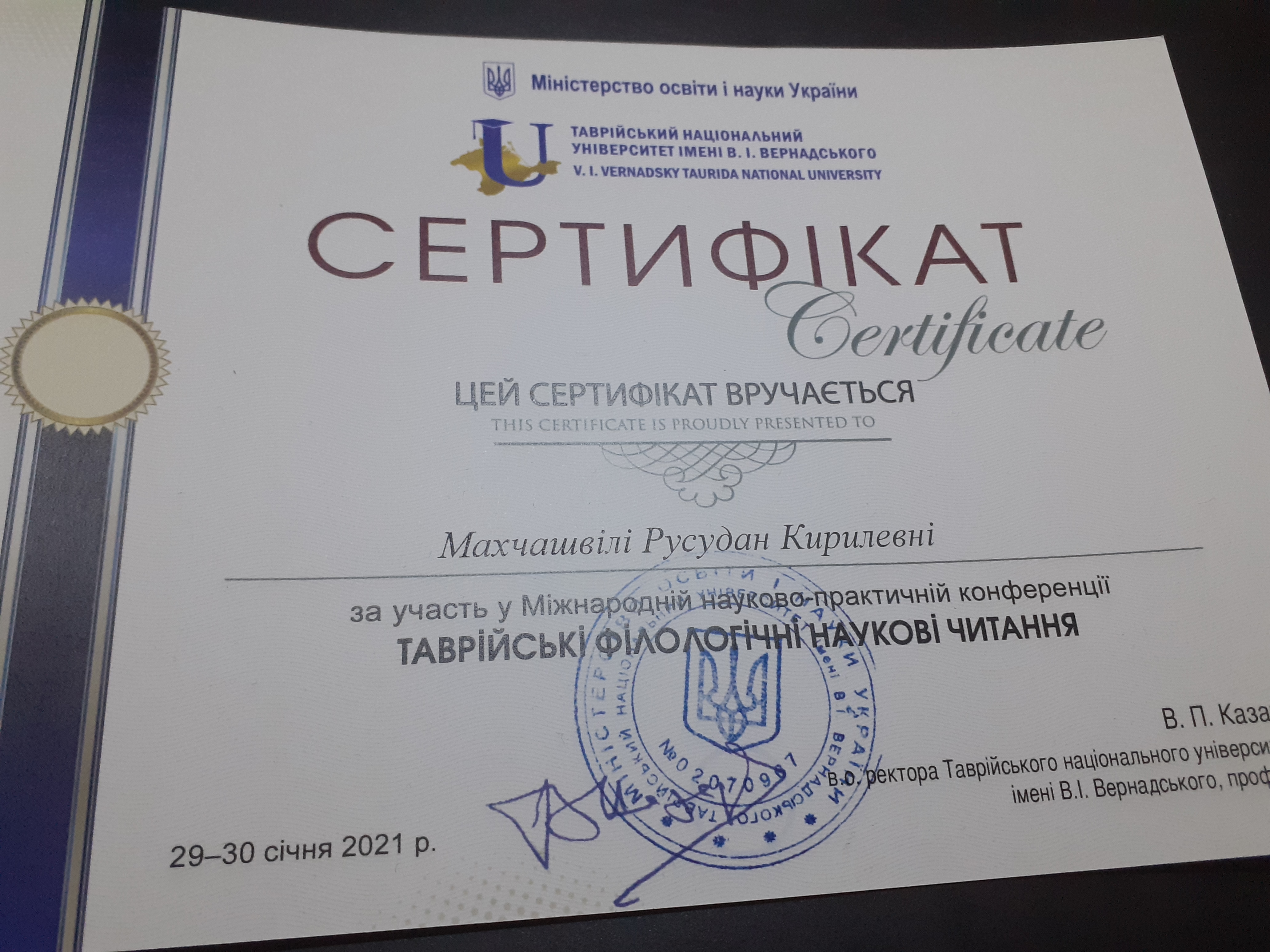 | 6534 | Міжнародна науково-практична конференція "Таврійські філологічні наукові читання" | DIGITAL HYBRID LEARNING FOR ORIENTAL AND EUROPEAN LANGUAGES PROGRAMS: QUALITTY ASSESSMENT IN REGIONAL UNIVERITIES OF UKRAINE | Kyiv, Ukraine |