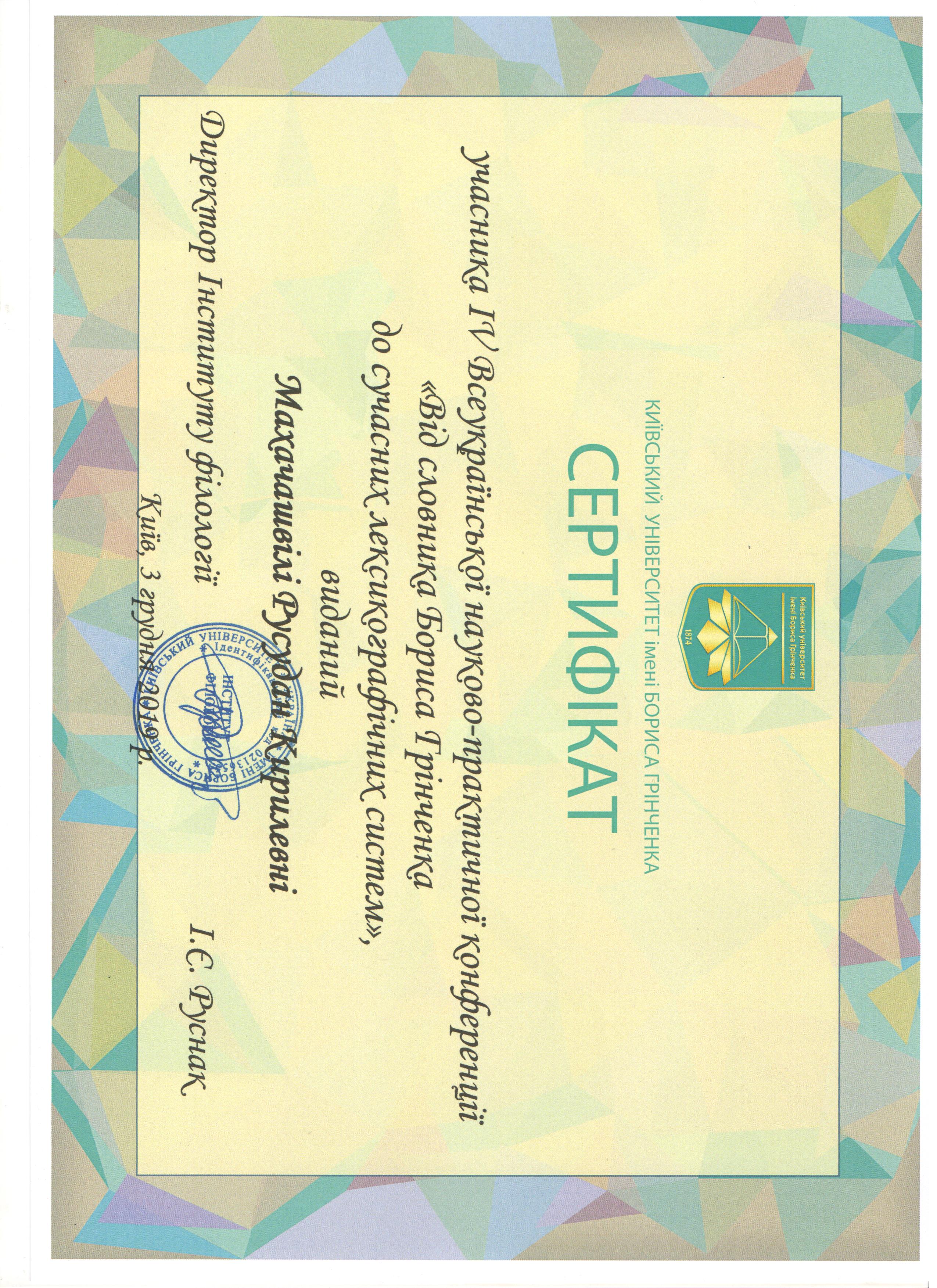 | 6330 | III-IV КОНГРЕС СХОДОЗНАВЦІВ до 150-ї річниці від дня народження Агатангела Кримського | Digital communication and information communication tools for final qualification assessment in oriental languages programs | Kyiv, Ukraine | document.pdf | |