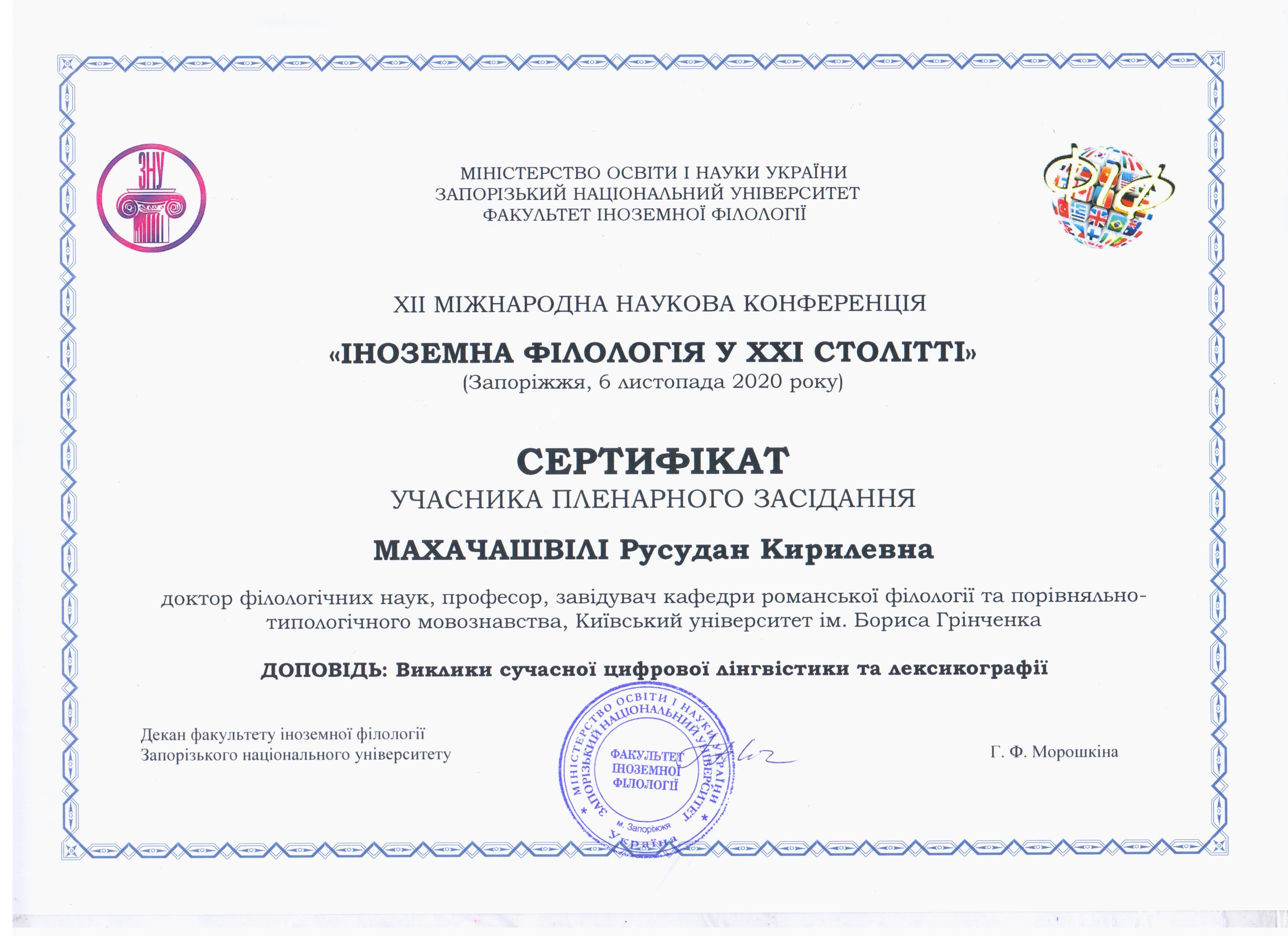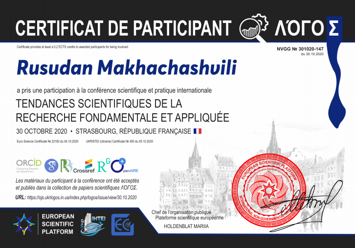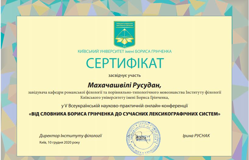 | 22 | Кафедра романської філології | C-2077-2016 | 3 | 1 | 2021 | https://publons.com/researcher/1499008/rusudan-makhachashvili/ |