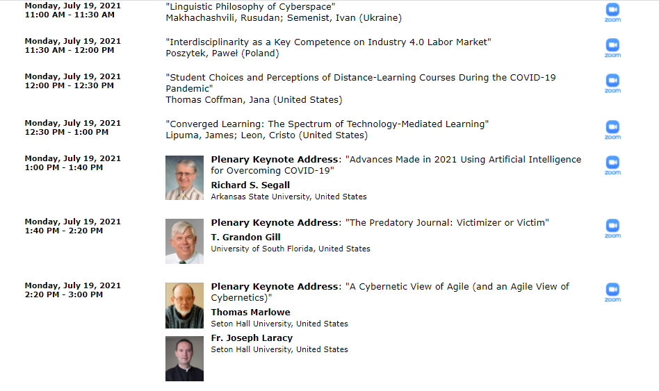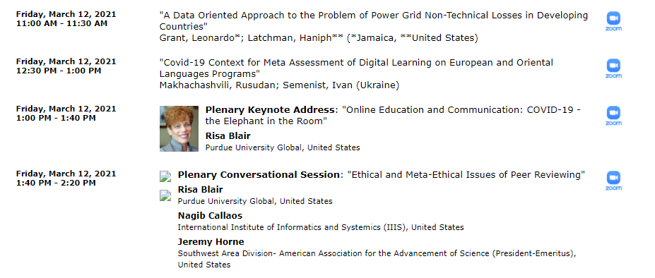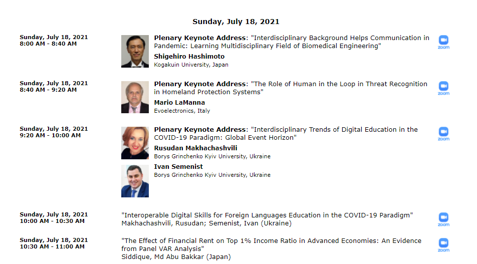 | 7009 | 25th World Multiconference on Systemics, Cybernetics and Informatics (WMSCI 2021), Florida, USA, 2021 | Keynote: Interdisciplinary Trends of Digital Education in the COVID-19 Paradigm: Global Event Horizon | Florida, USA |