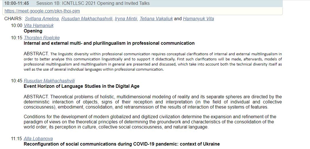 | 6744 | The International Conference on New Trends in Languages, Literature and Social Communications | Keynote: Event Horizon of Language Studies in the Digital Age | Kryviy Rih, Ukriane |