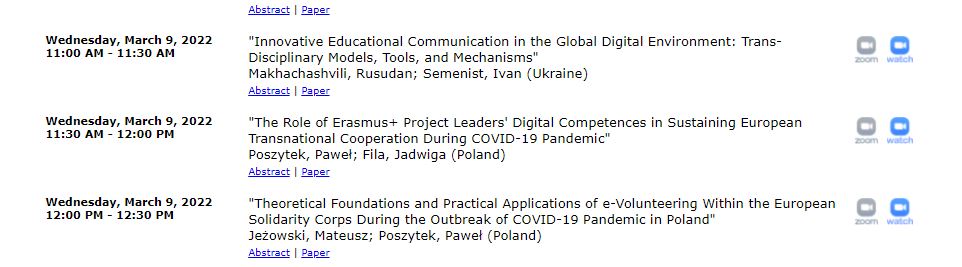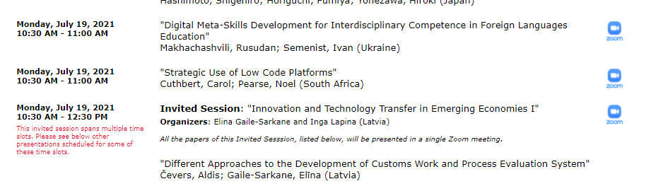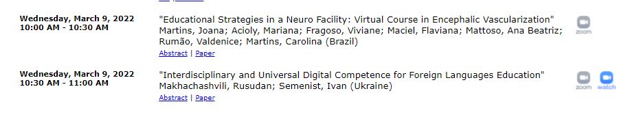 | 7011 | 19th International Conference on Education and Information Systems, Technologies and Applications (EISTA 2021), Florida, USA, 2021 | Digital Meta-Skills Development for Interdisciplinary Competence in Foreign Languages Education | Florida, USA |