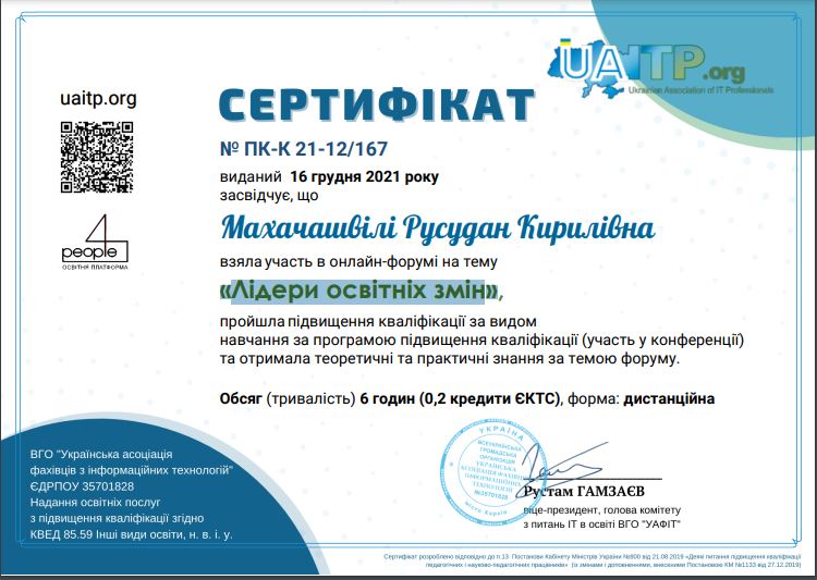 | 7797 | Лідери освітніх змін | - | Київ, "Українська асоціація фахівців з інформаційних технологій" |