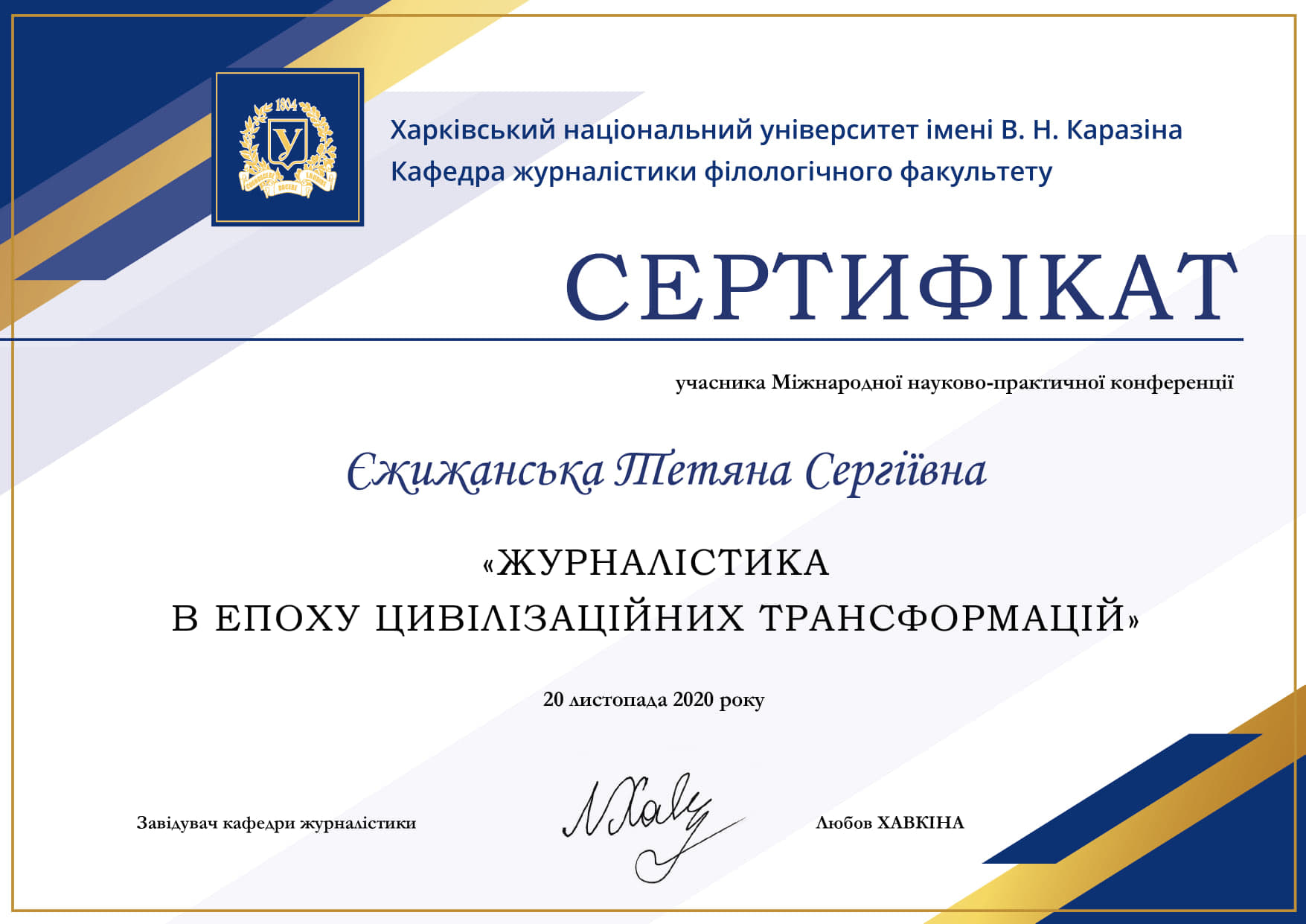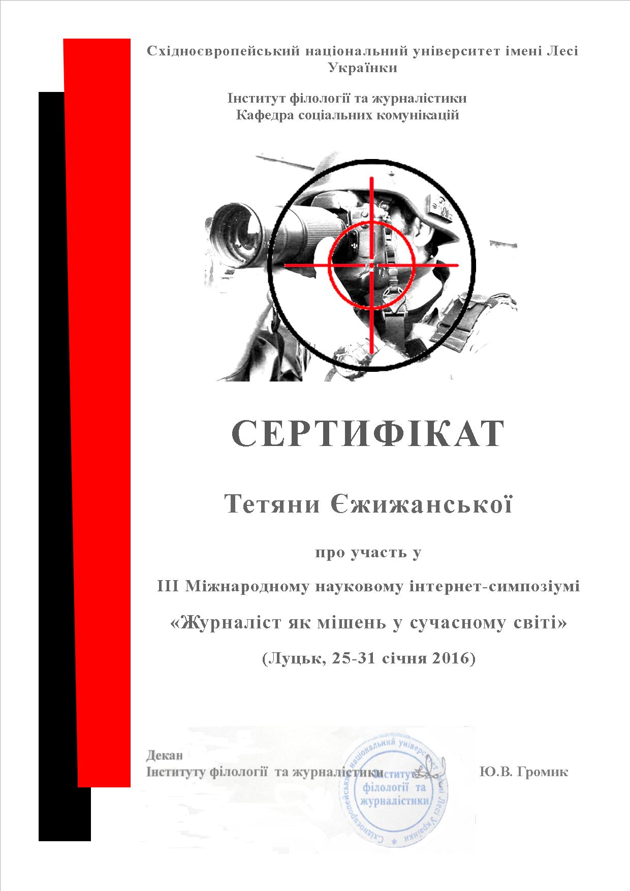 | 1152 | ІІІ Міжнародний науковий інтернет-симпозіум «Журналіст як мішень у сучасному світі» | Особливості медіаспоживання в сучасних медіакомунікаціях | Східноєвропейський національний університет імені Лесі Українки, Інститут філології та журналістики, м Луцьк |
