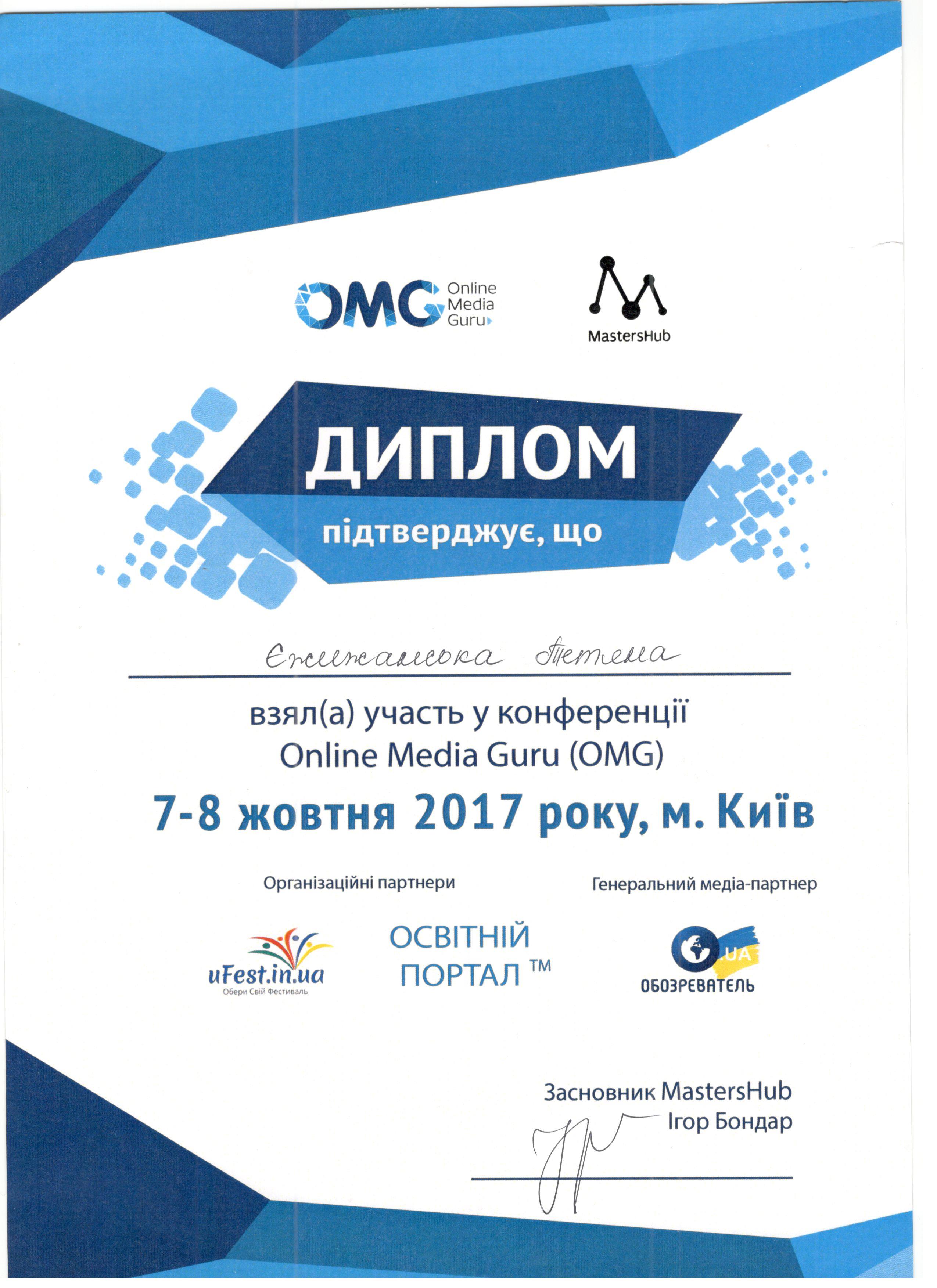 | 2845 | Online Media Guru (OMG) освітня конференція з digital media та інтернет-журналістики + школа практики | освітня конференція з digital media та інтернет-журналістики | м. Київ |
