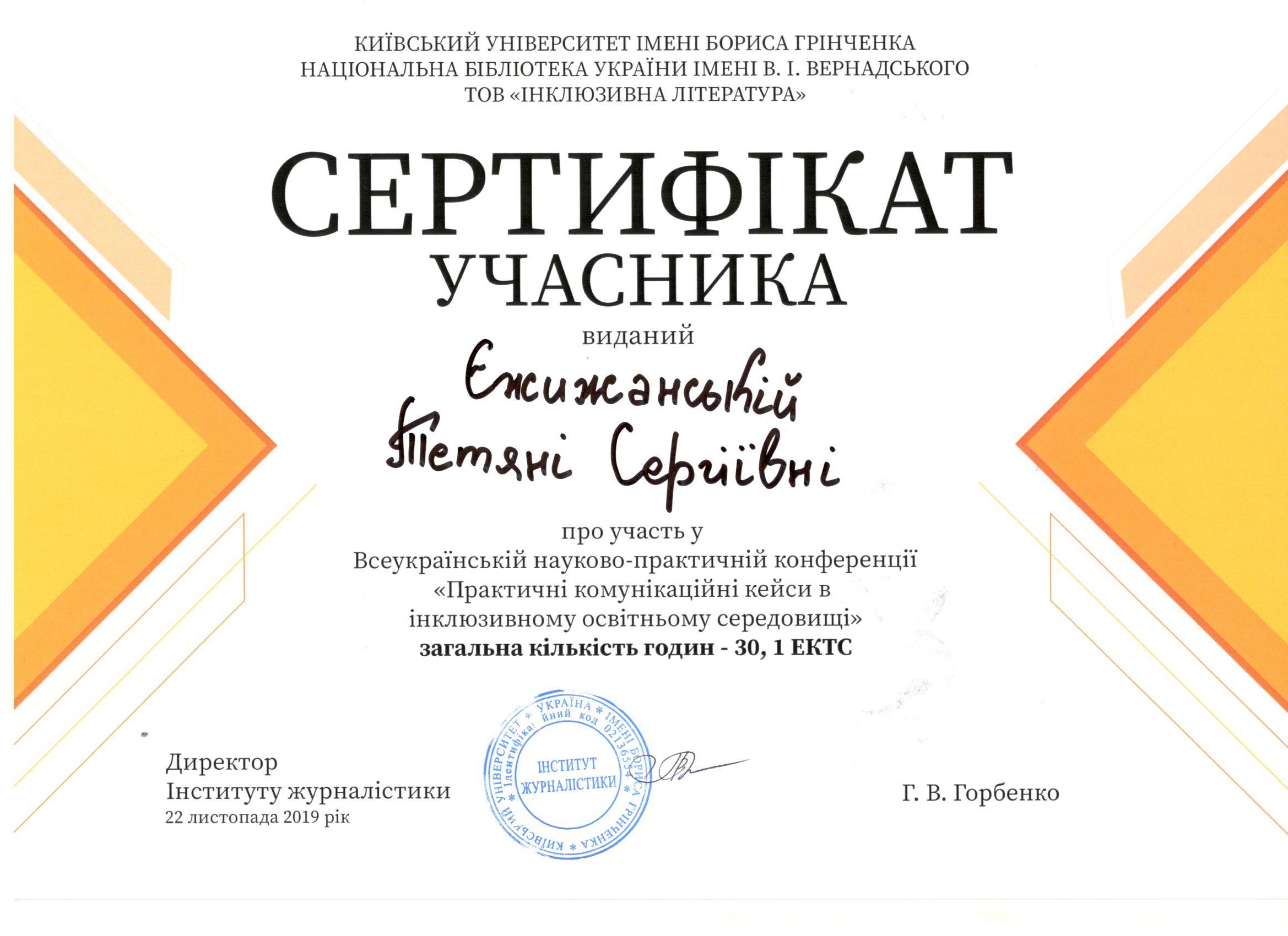| 4880 | Всеукраїнська науково-практична конференція "Практичні комунікаційні кейси в інклюзивному освітньому середовищі" | Комунікація з різноманітними цільовими аудиторіями | м. Київ |