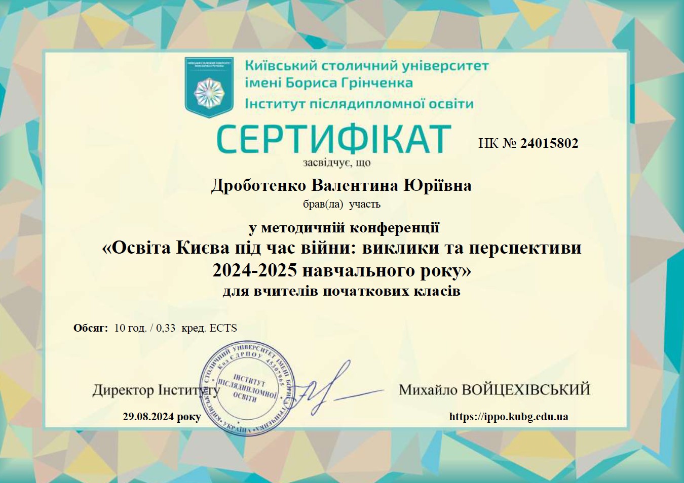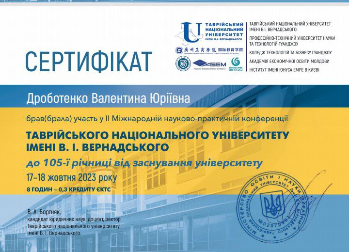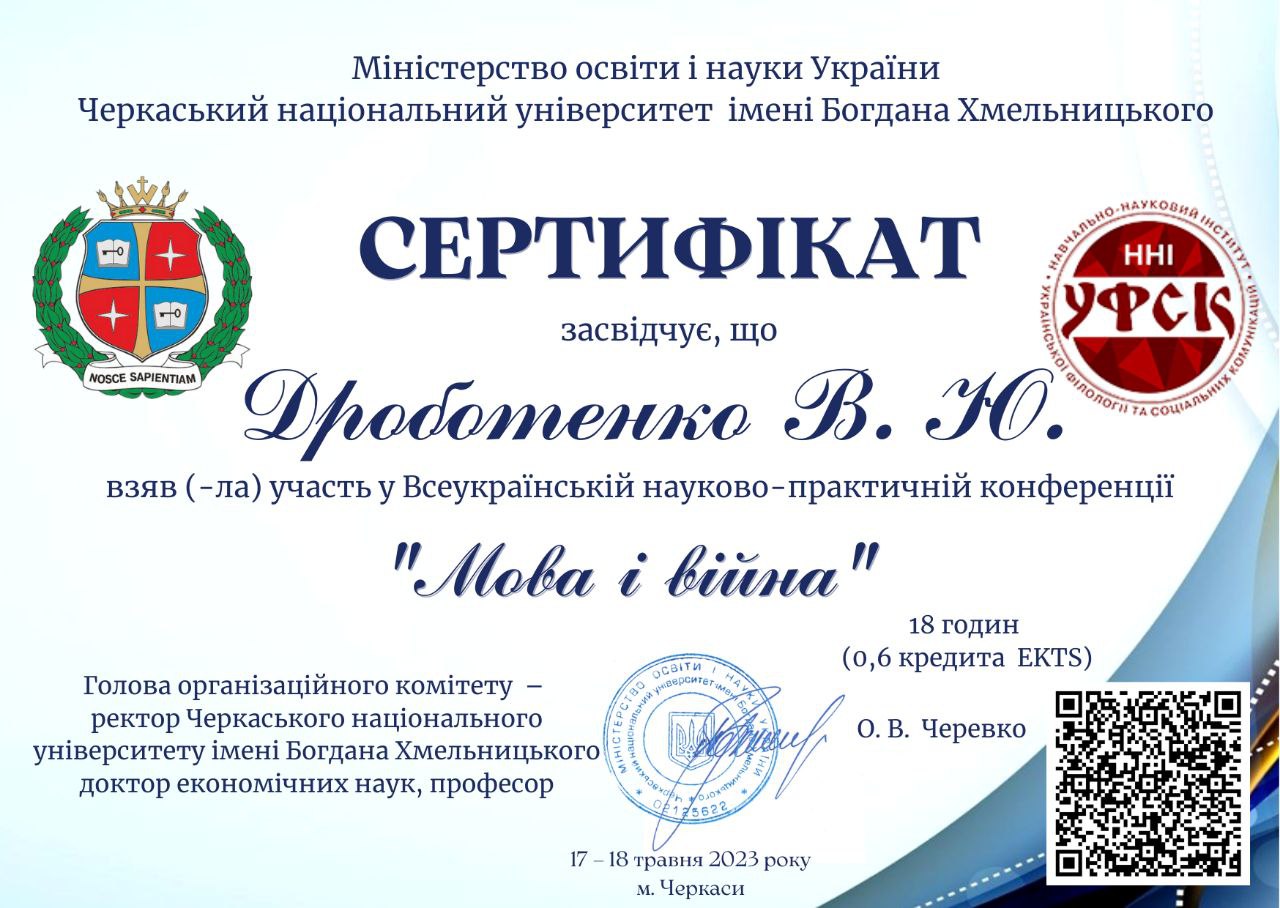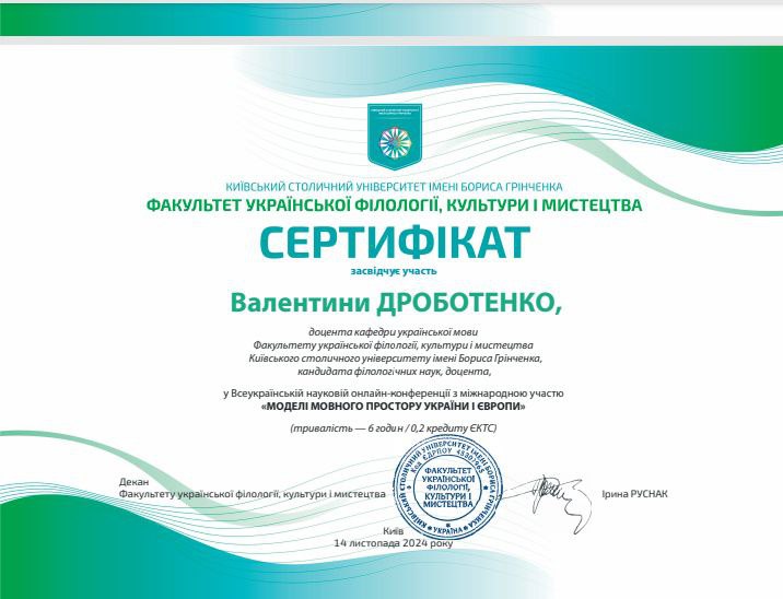 | 8466 | Мовленнєва культура в діяльності сучасного педагога | Інший модуль | сертифікат-Дроботенко.pdf | 08.11.2023 00:00 |