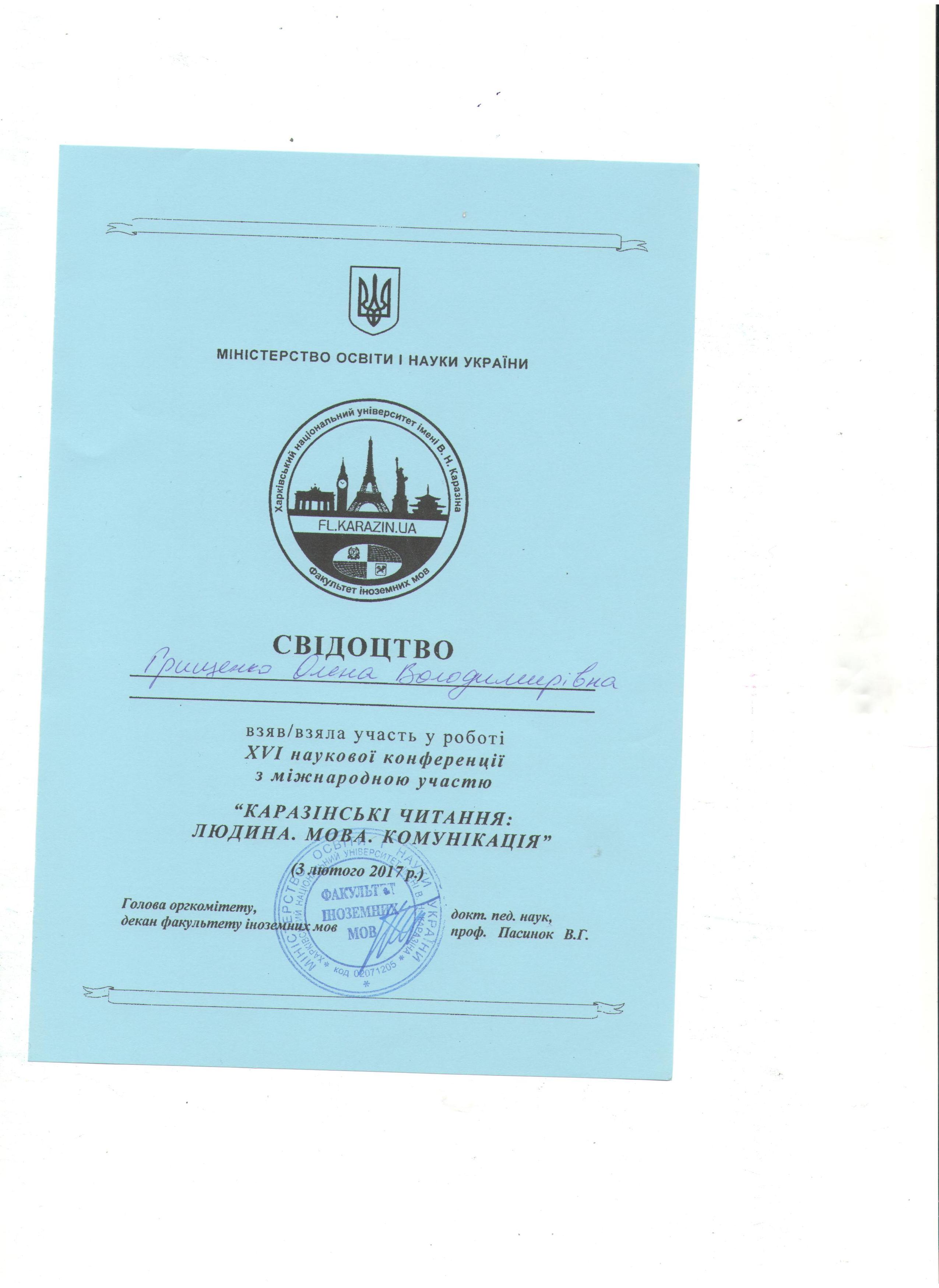 | 2392 | XVI наукова конференція “Каразінські читання: Людина. Мова. Комунікація" | “Fake, fake discourse and linguistic personality” | Харків, Харківський національний університеі ім. В.Н. Каразіна |