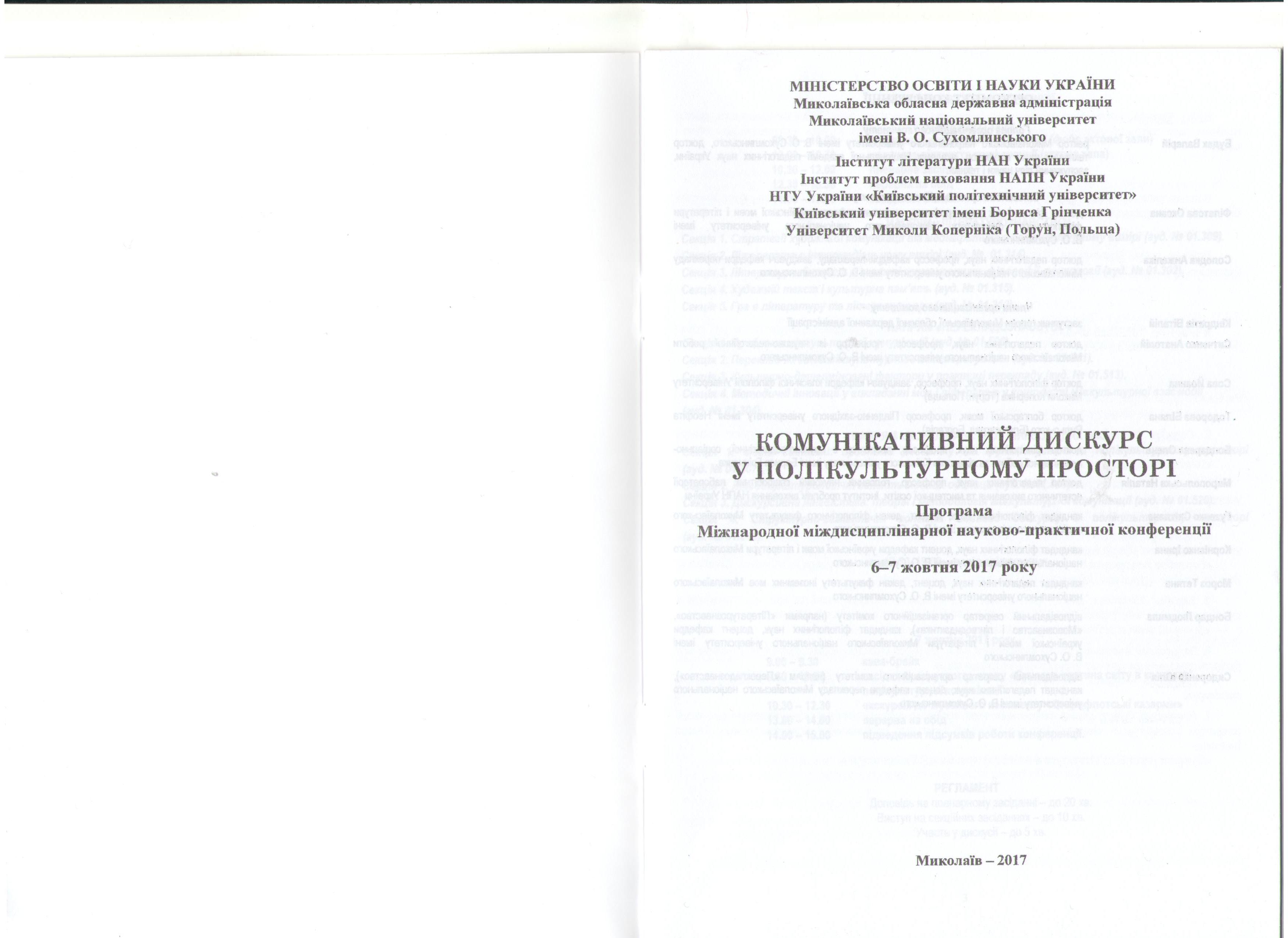 | 2393 | Міжнародна міждисциплінарна науково-практична конференція "Комунікативний дискурс у полікультурному просторі" | Fake: modern perception | Миколаїв, Миколаївський національний університет імені В.О. Сухомлинського |