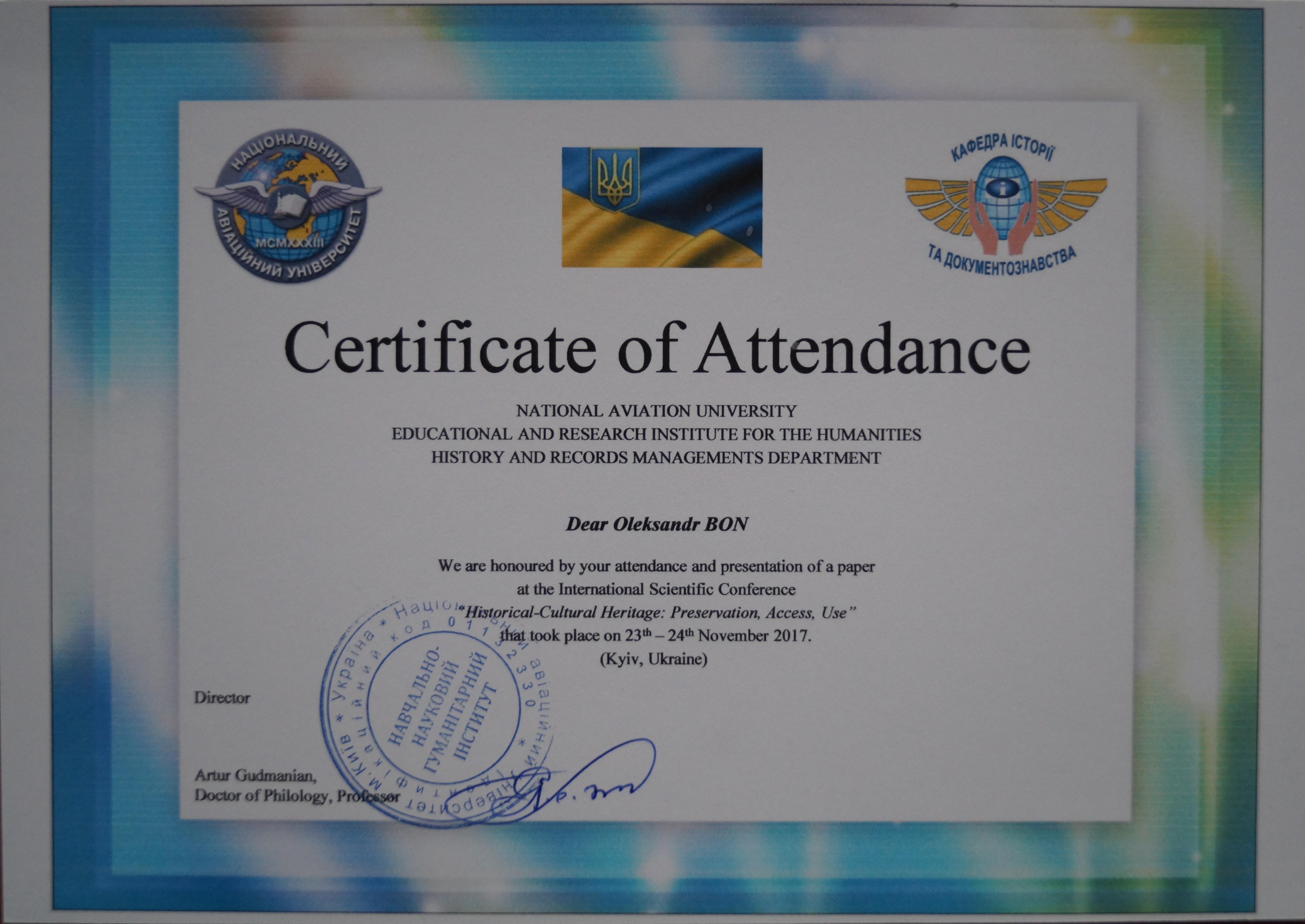 | ID | Назва | Тема доповіді | Місце проведення | Документ, що засвідчує | Дата проведення |
