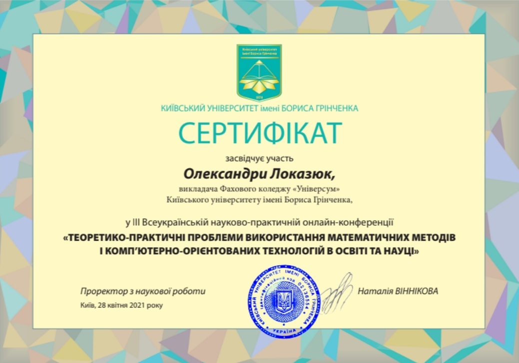 Київський університет імені Бориса Грінченка Факультет інформаційних технологій та управління, магістр Математики.