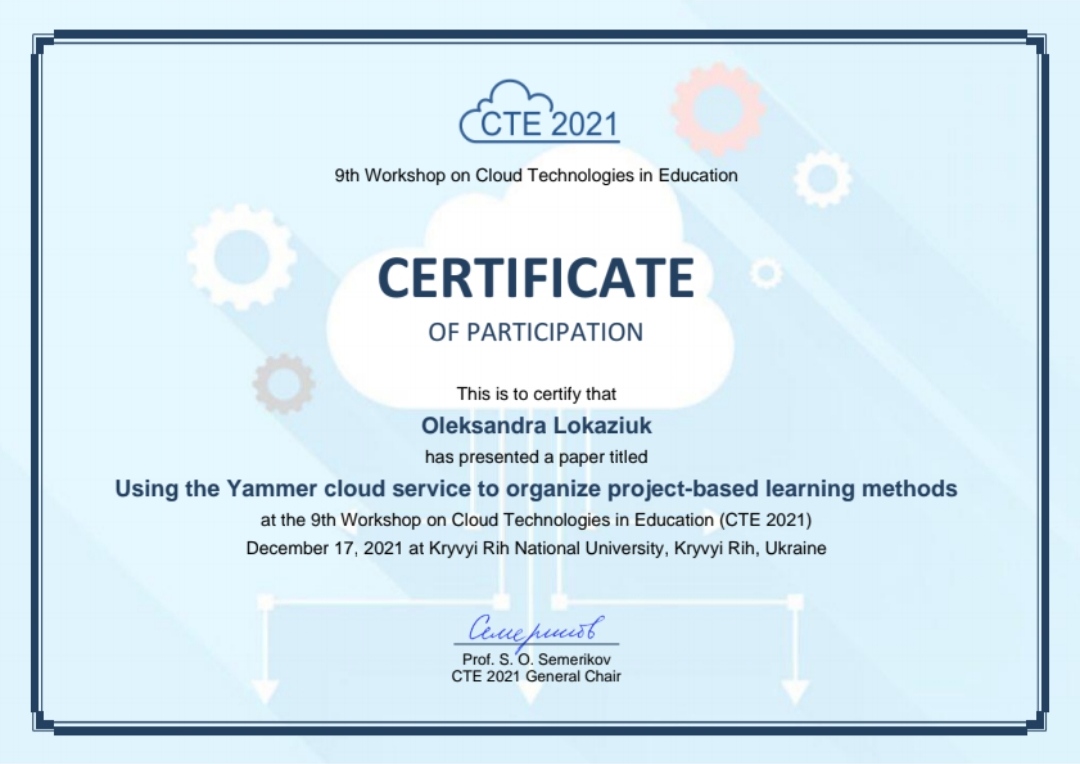 7832 9th Workshop on Cloud Technologies in Education Using the Yammer cloud service to organize project-based learning methods Криворізький державний педагогічний університет document
