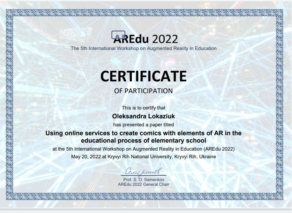 8123 5th International Workshop on Augmented Reality in Education (AREdu 2022) Using online services to create comics with elements of AR in the educational process of elementary school Криворізький державний педагогічний університет. document