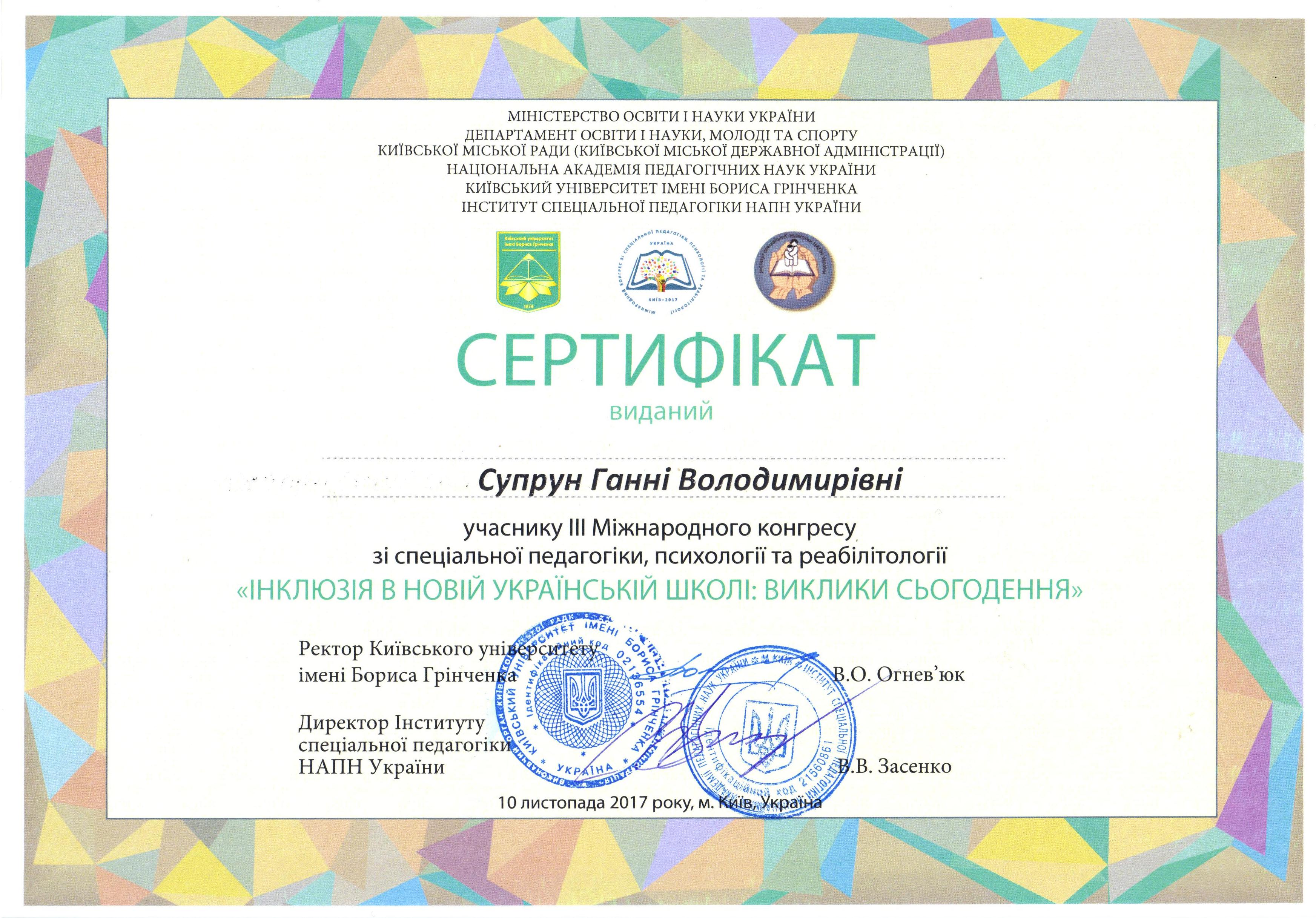 | 12778 | "Сучасний дизайн інклюзивного навчання: успішні українські та зарубіжні практики" | без доповіді | м.Київ | document.pdf | |