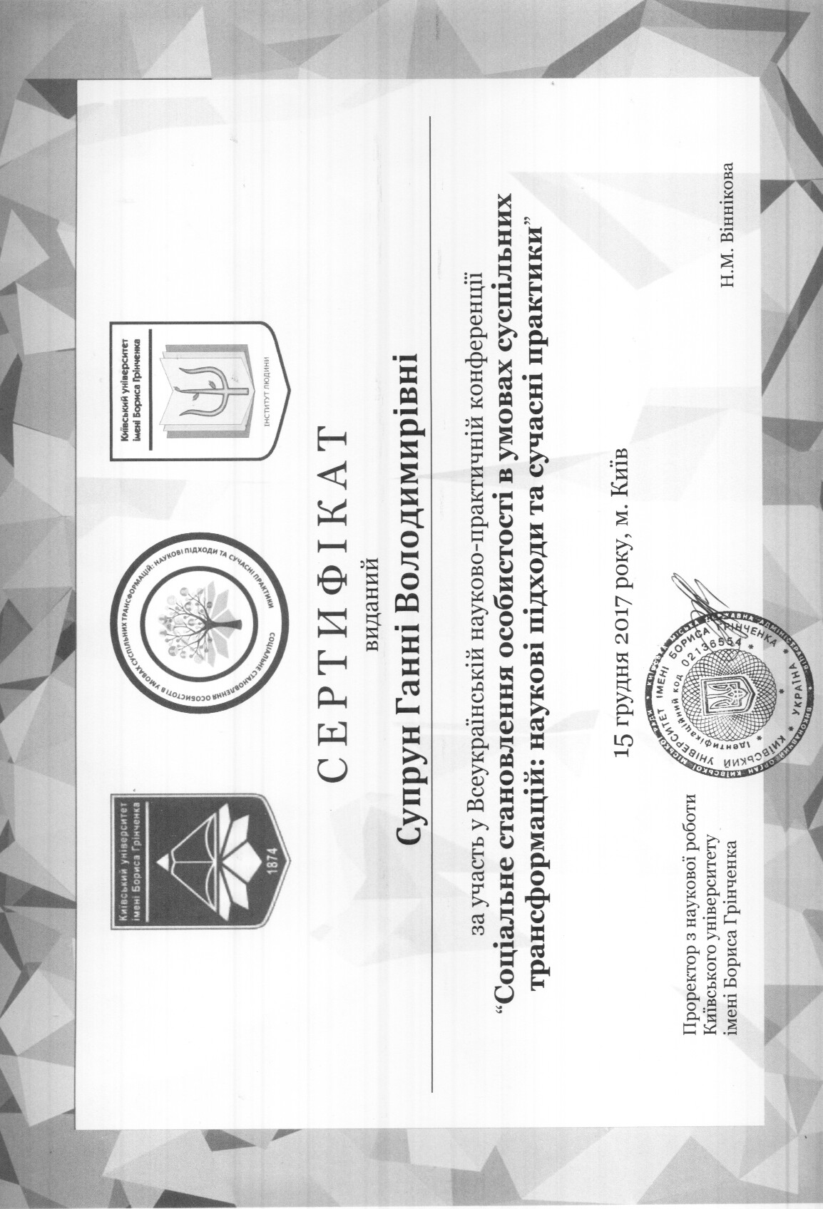 | 6147 | Соціальне становлення особистості в умовах суспільних трансформацій: наукові підходи та сучасні практики | без доповіді | Київ | document.pdf | |