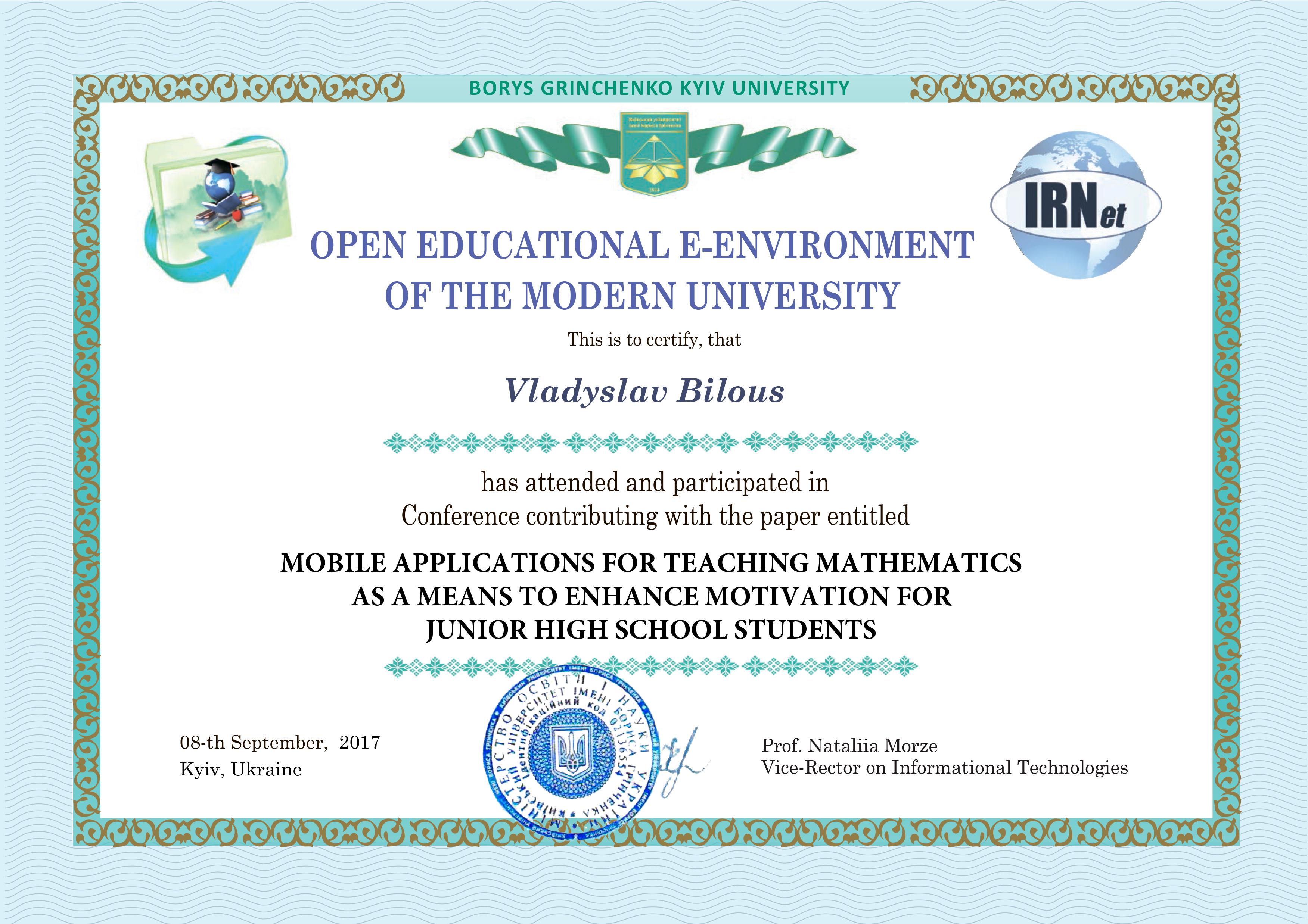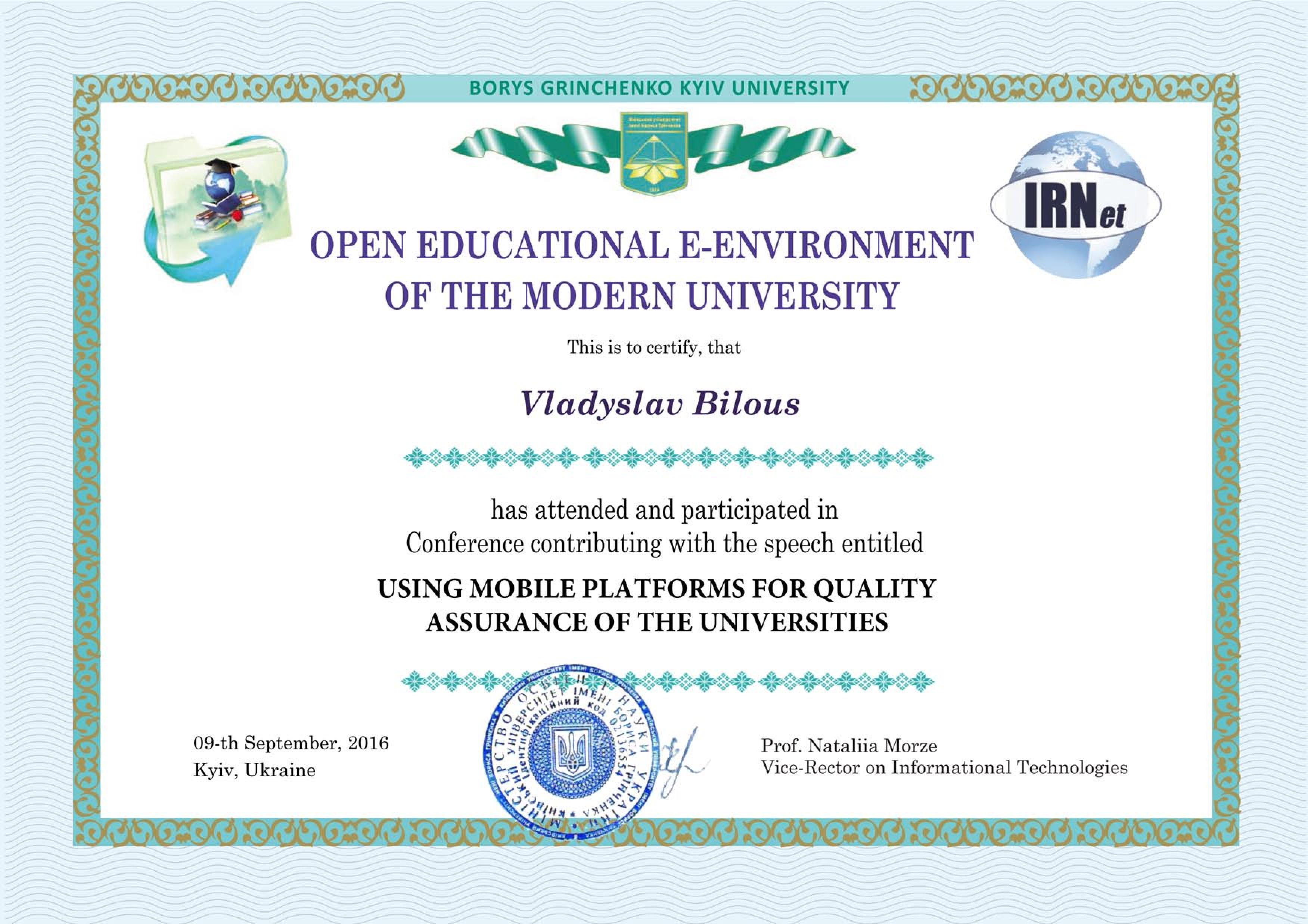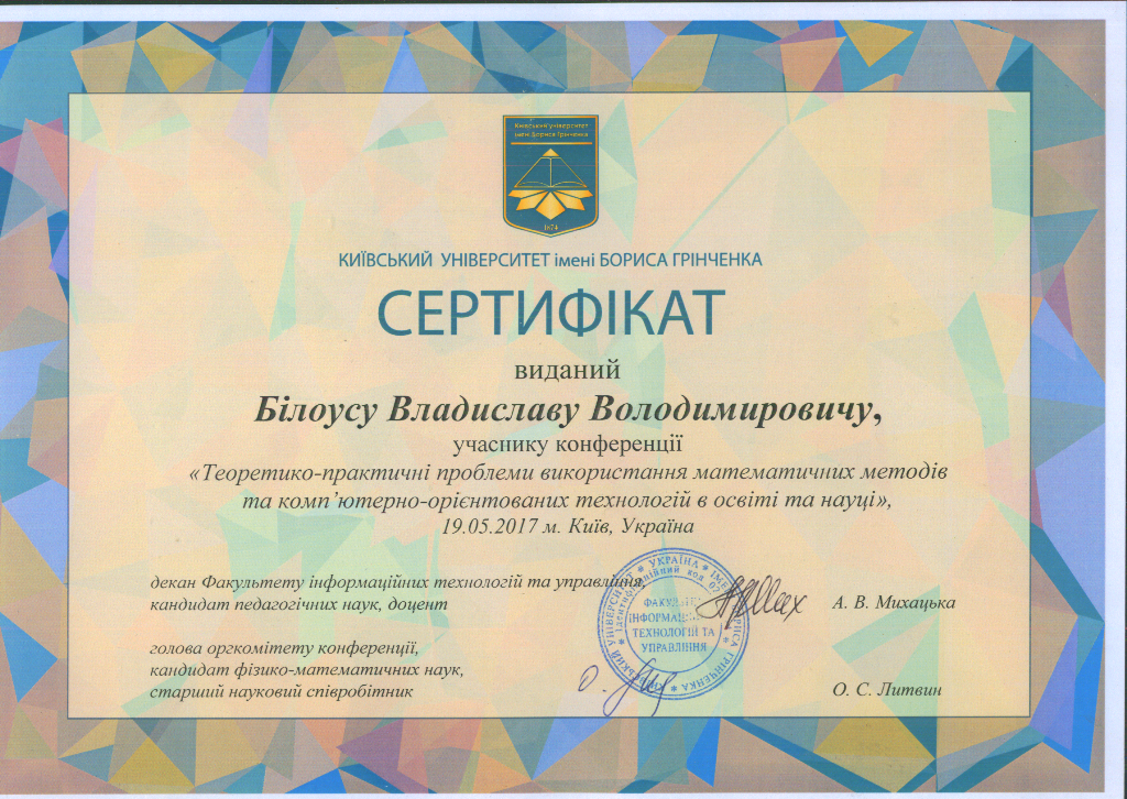 | 704 | Відкрите освітнє е-середовище сучасного університету | Міжнародна науково-практична конференція | Київський університет імені Бориса Грінченка | 09.09.2016 00:00 | 2 |