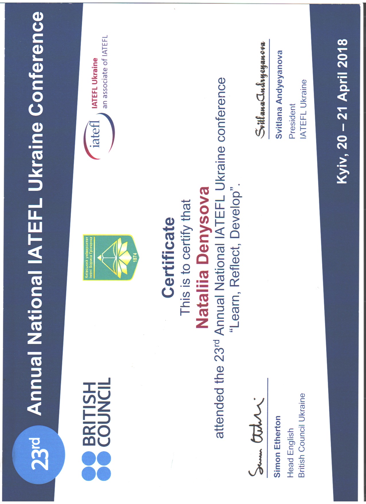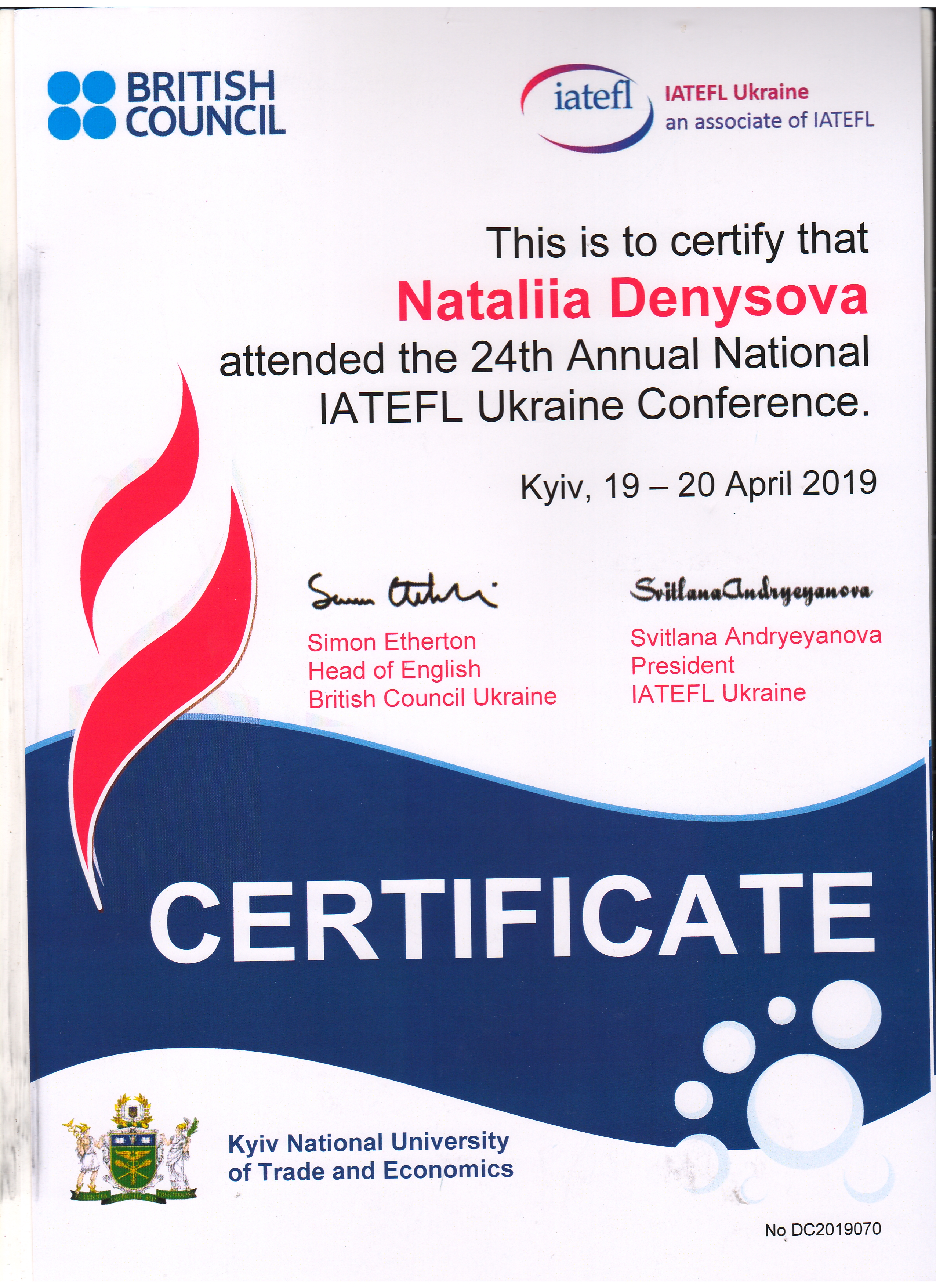 | 4866 | The 24thAnnual National IATEFL Ukraine Conference | New generation teaching | Kyiv National of University of Trade in Ukraine |