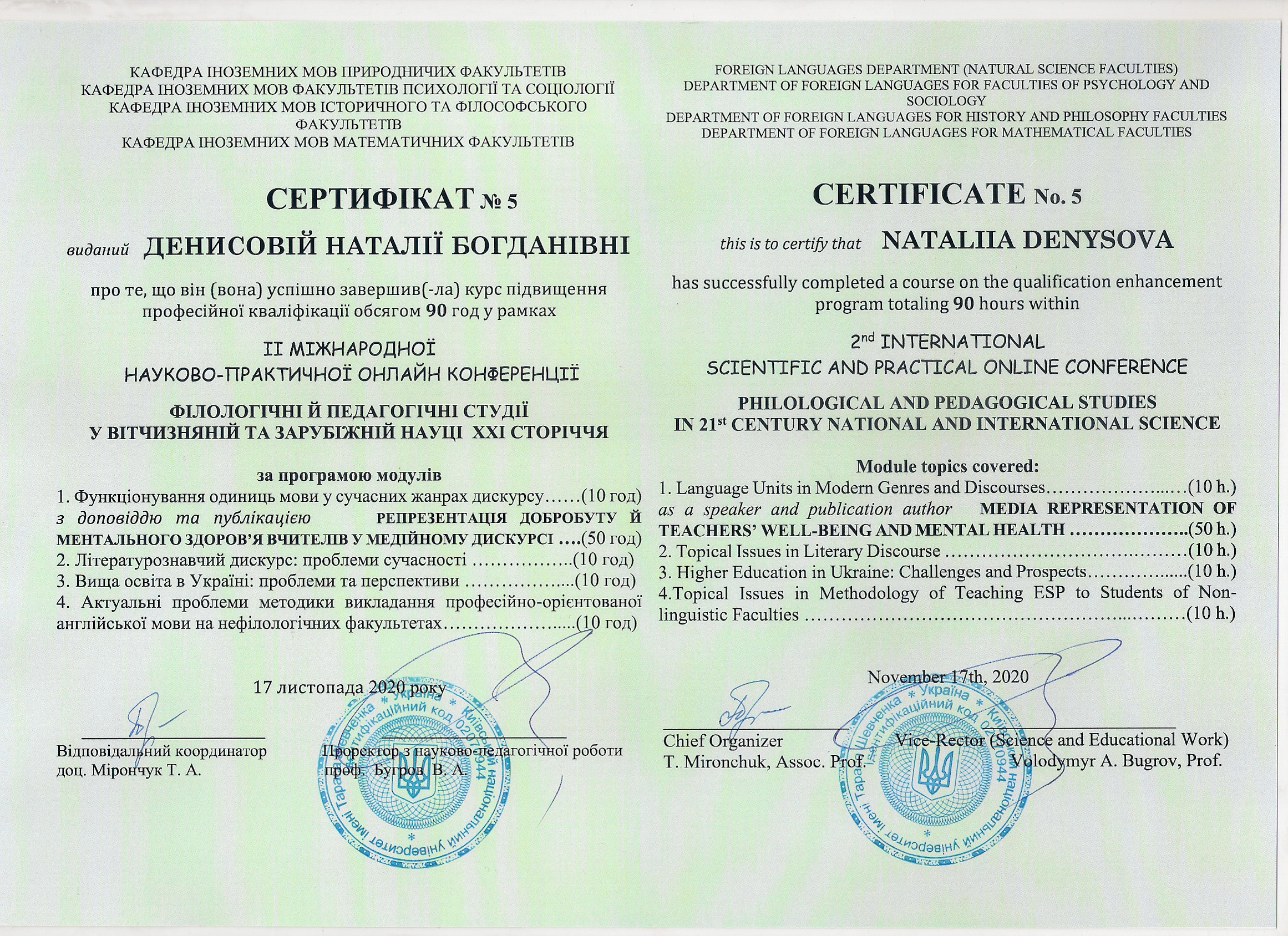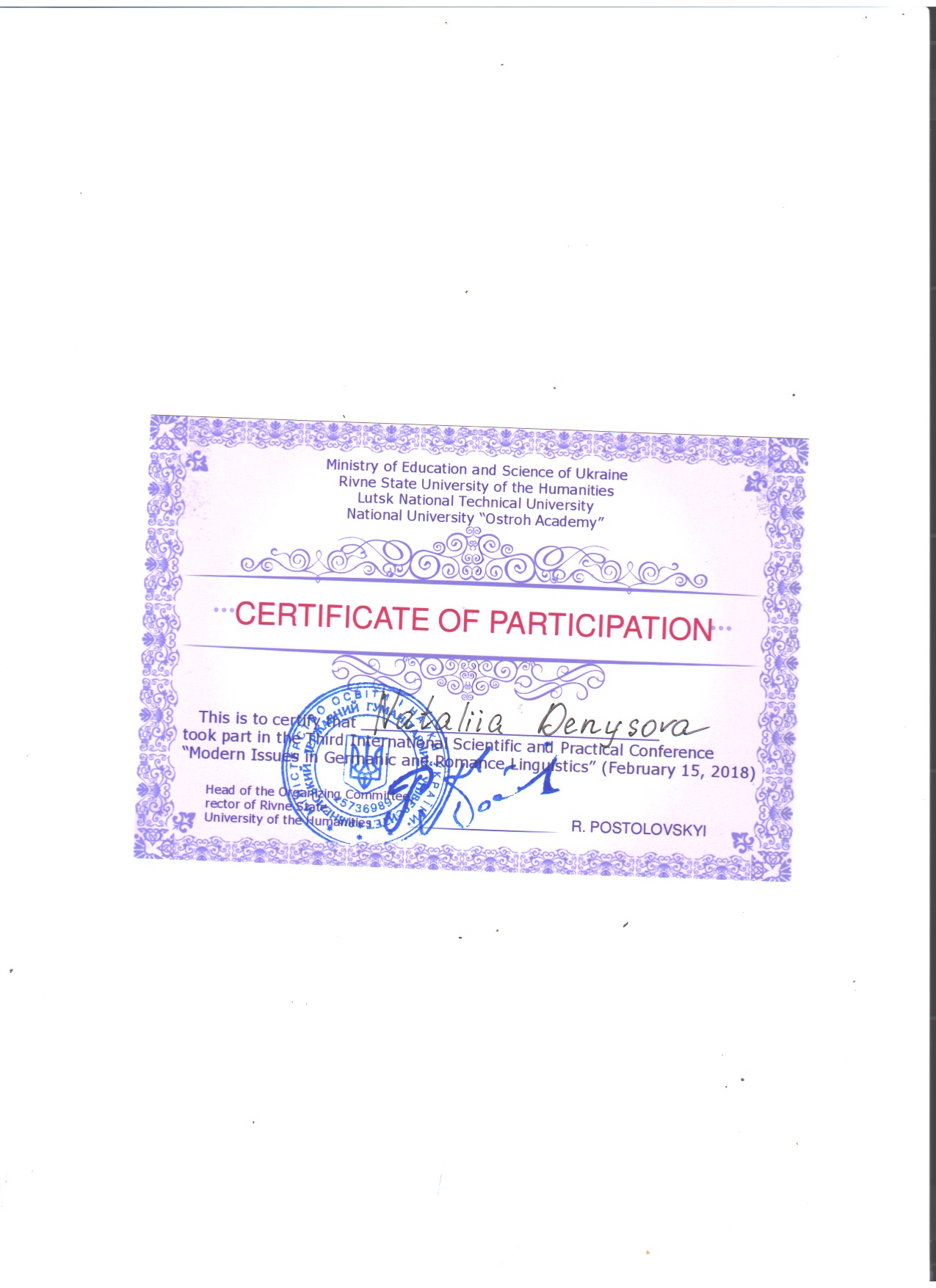 | 3183 | The third International Scientific and Practical Conference "Modern Issues in Germanic and Romance Linguistics" | A teacher of English in the 21 st Century | Rivne |