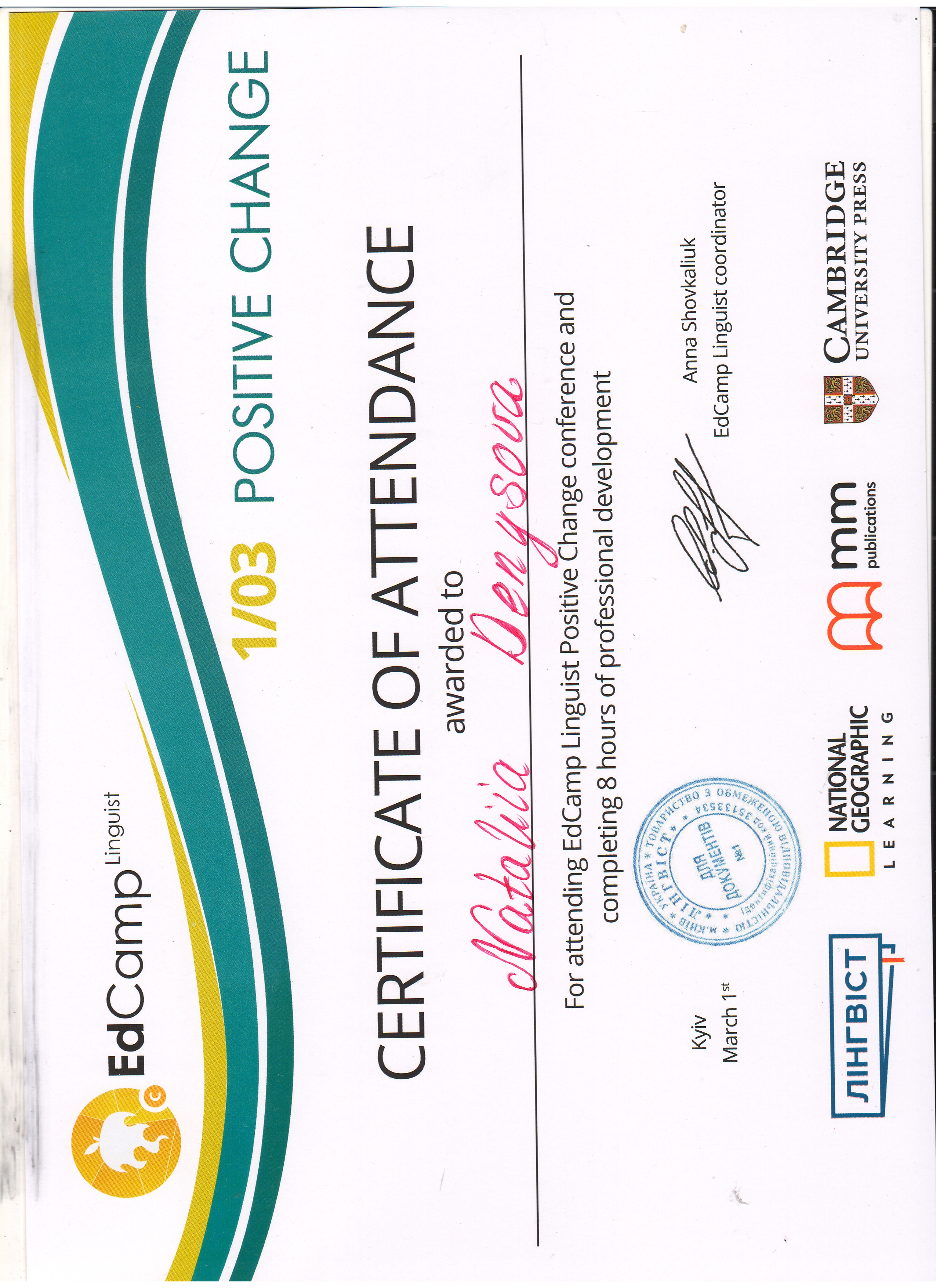 | 4867 | EdCamp Linguist Positive Change conference and completing 8 hours of professional development | Positive Change | Kyiv |