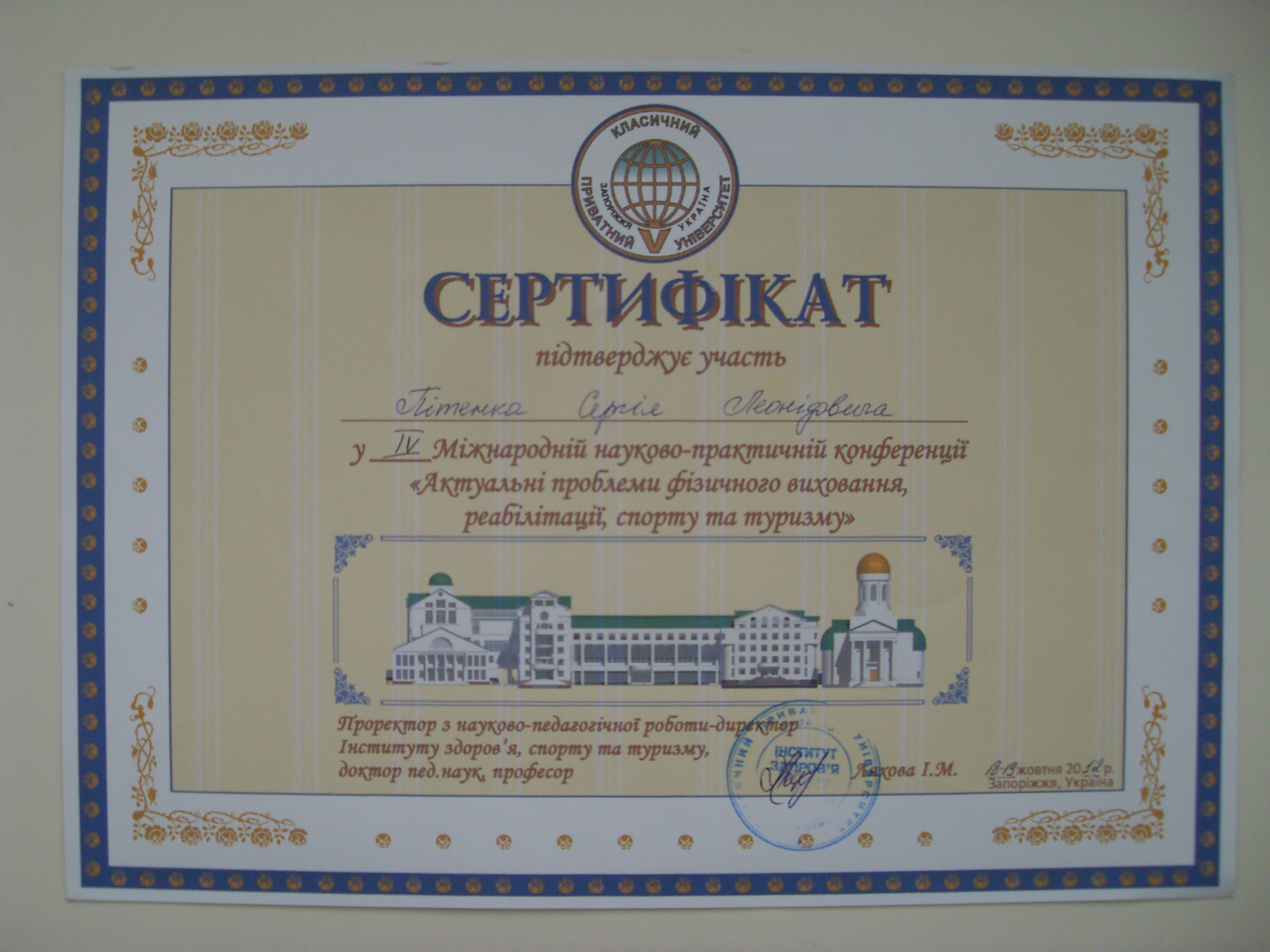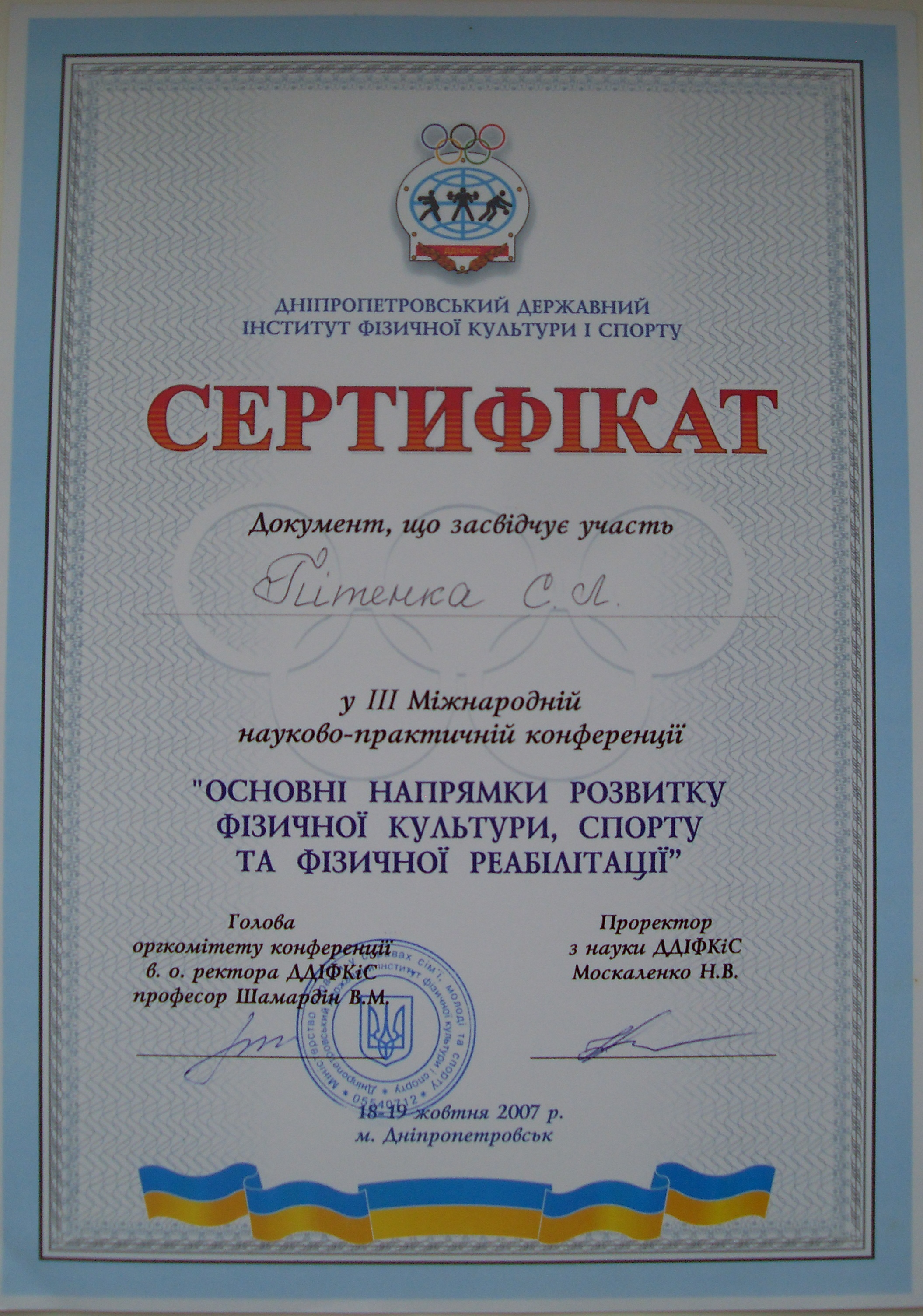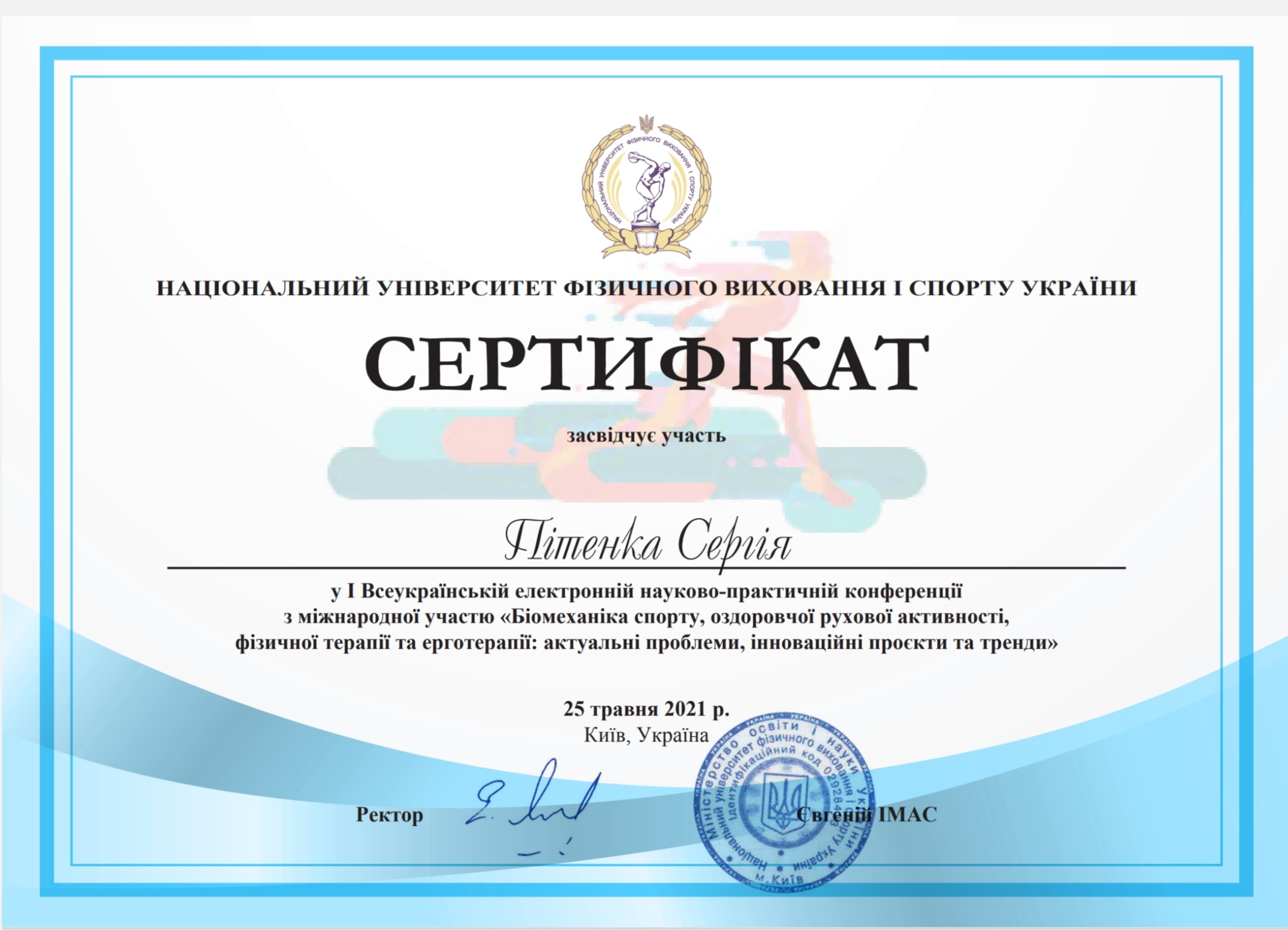 Національний Університет Фізичного виховання й спорту України. Диплом з відзнакою Перелік місць роботи