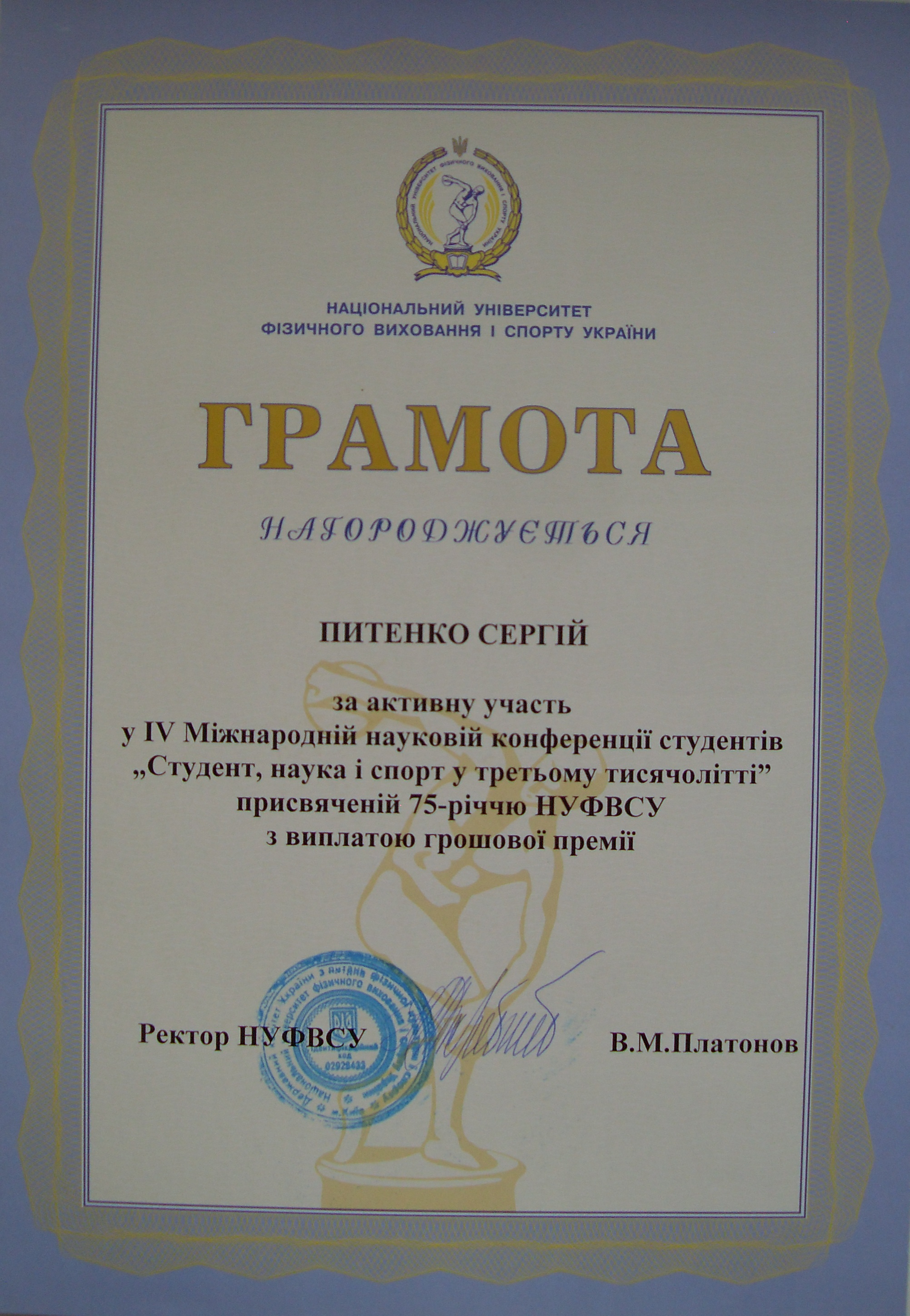 | 456 | Факультет здоров'я, фізичного виховання і спорту | Кафедра фізичного виховання і педагогіки спорту | 0 | 0 | 2024 | https://www.researchgate.net/profile/Sergei_Pitenko |