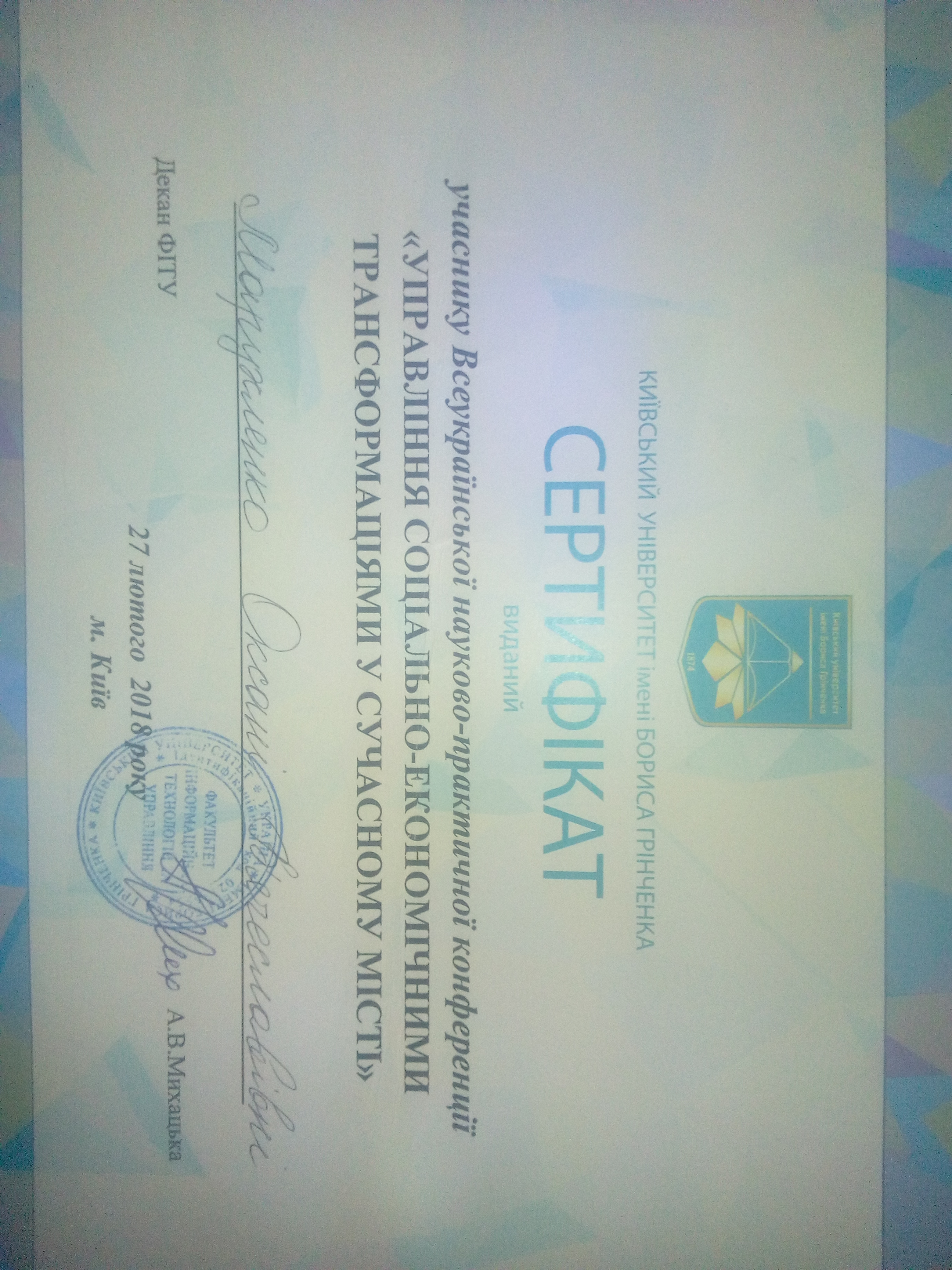 | ID | Назва | Тема доповіді | Місце проведення | Документ, що засвідчує | Дата проведення |