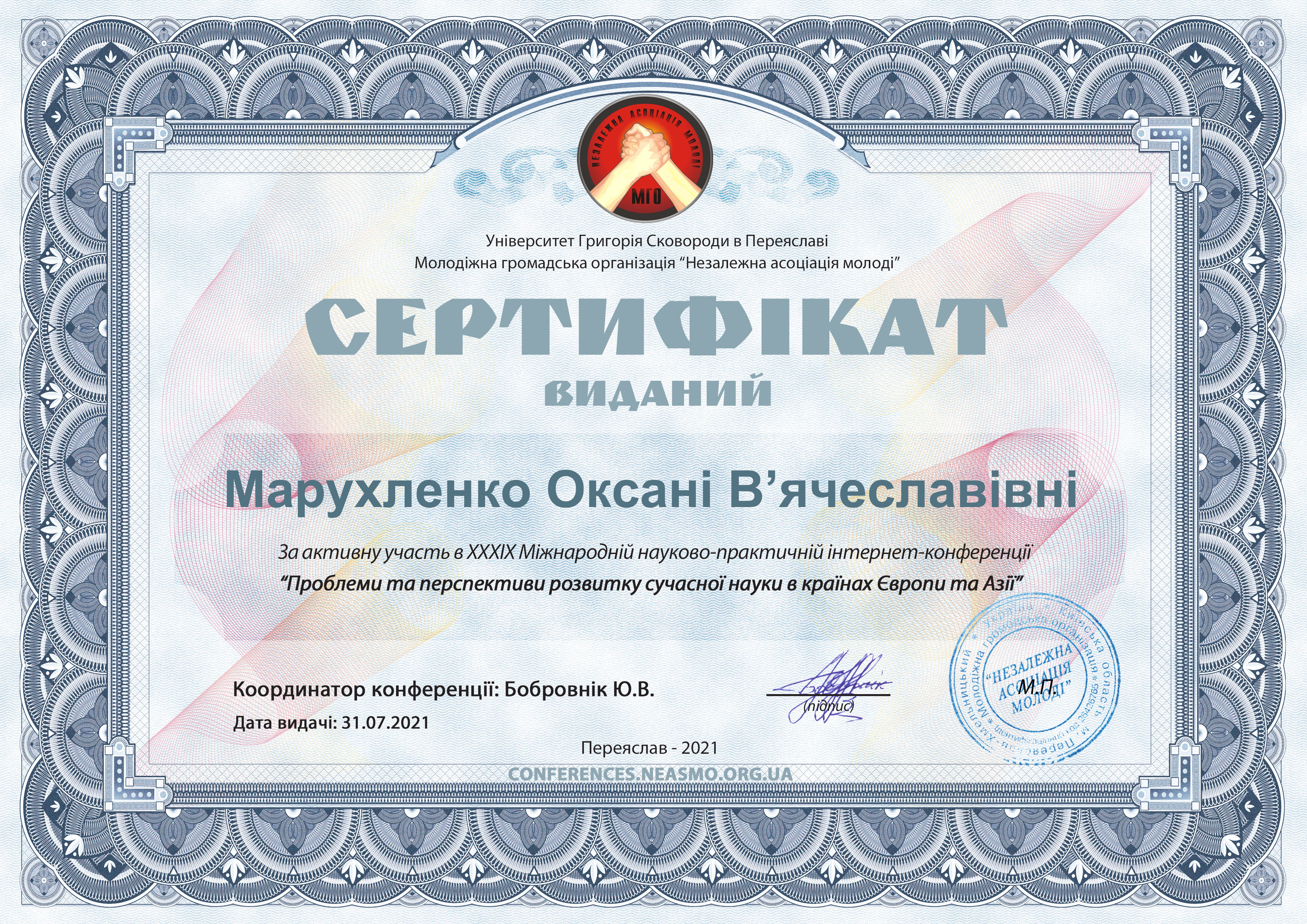 | 809 | Факультет економіки та управління | Кафедра управління | 11.3 | 1 | 2025 | https://www.researchgate.net/profile/Oksana-Maruhlenko/stats |