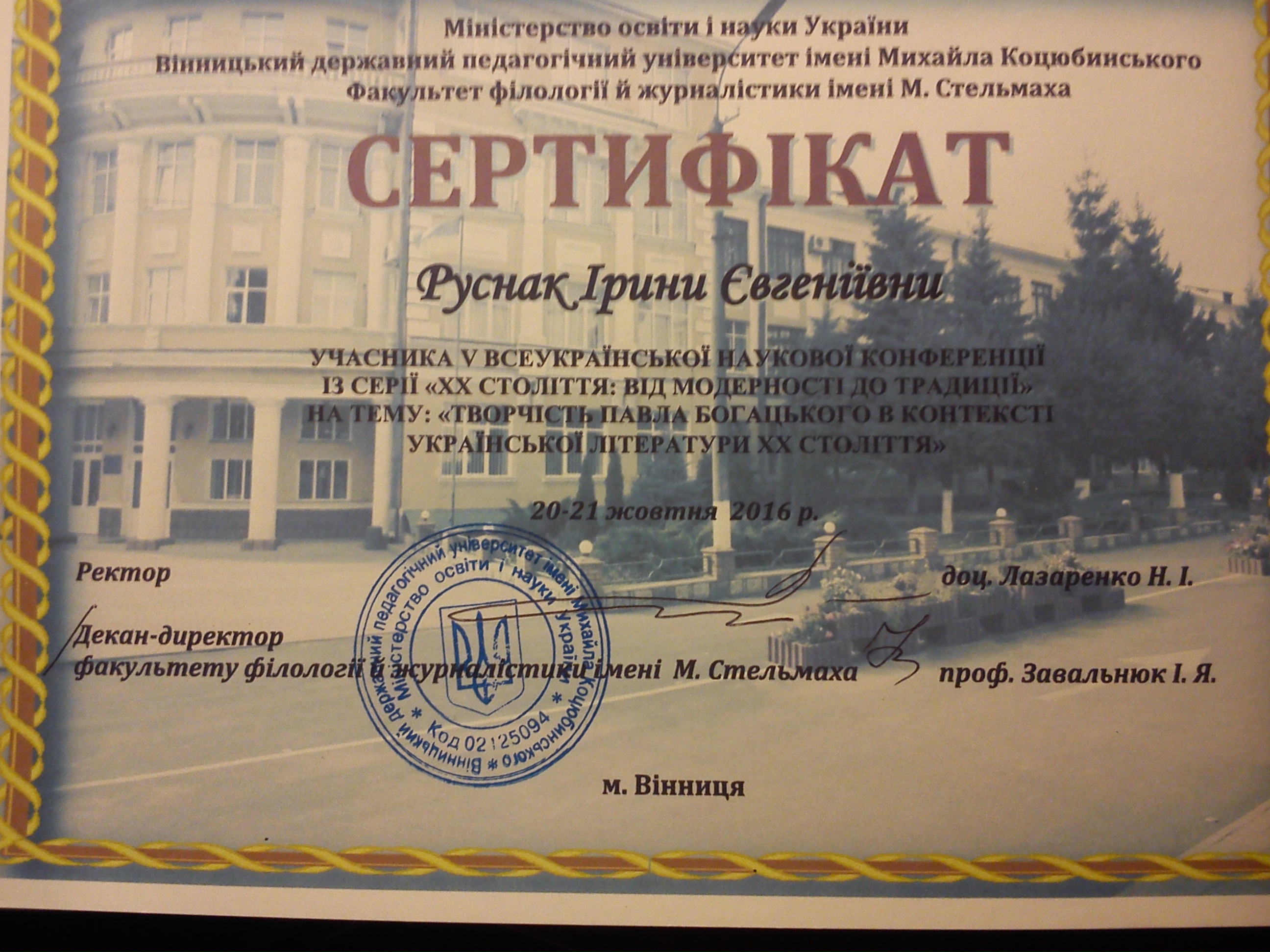 | 1181 | V Всеукраїнська наукова конференція 'Творчість Павла Богацького в контексті української літератури ХХ століття' | 'Мала літературна енциклопедія' (1948-1950) Павла Богацького | Вінницький державний педагогічний університет імені Михайла Коцюбинського |