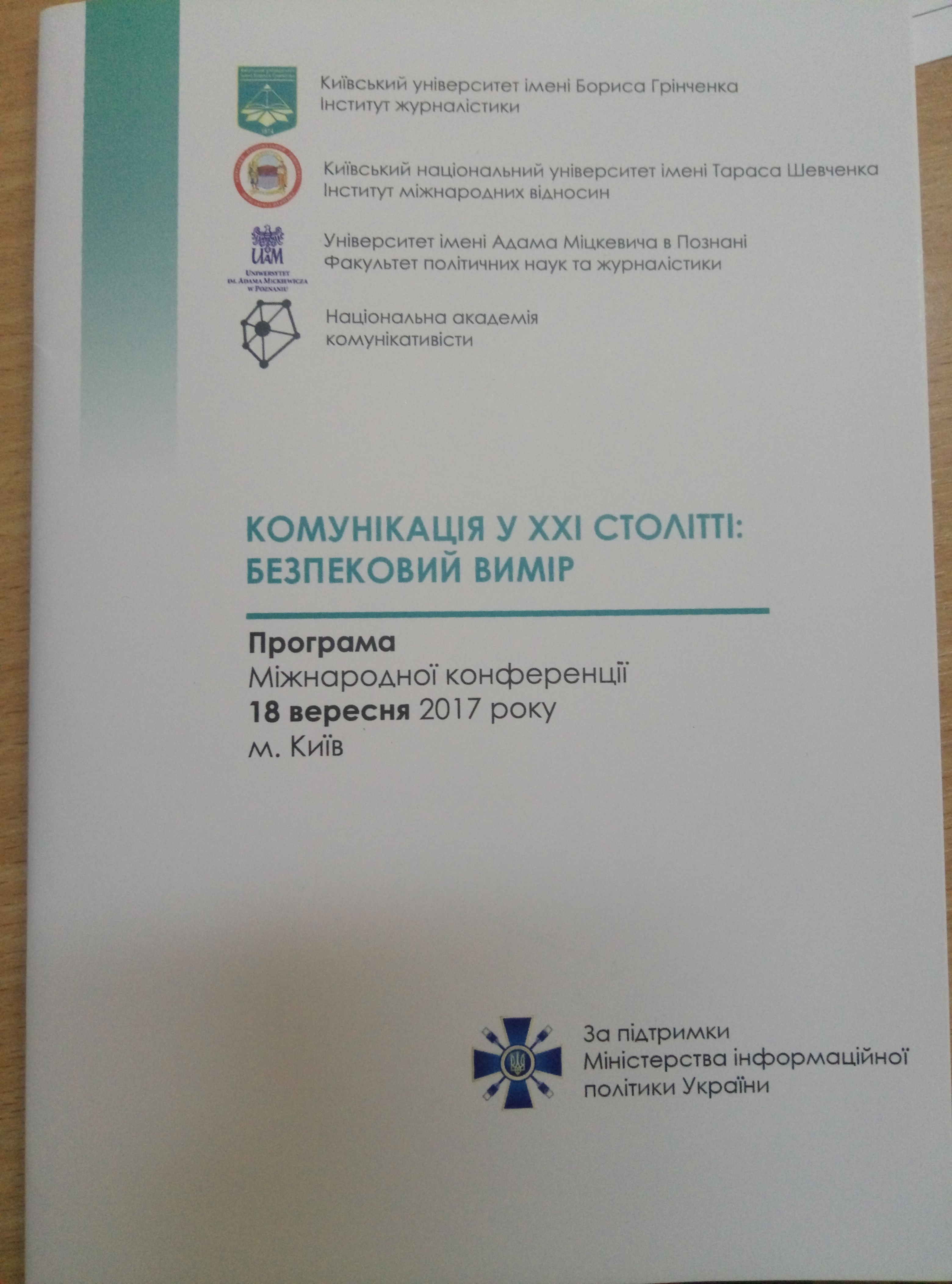 | 2681 | Міжнародна конференція «Комунікація в ХХІ столітті: безпековий вимір» | Управління інформацією в сучасному світі: без пекові аспекти | Київський університет імені Бориса Грінченка |