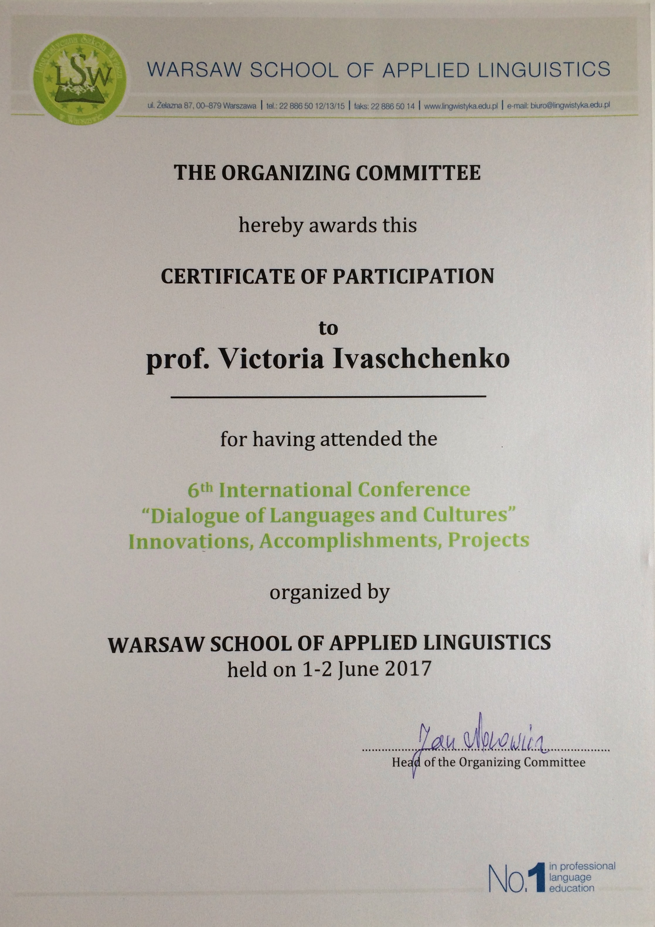 | 1706 | W dialogu języków i kultur | Терміни з компонентом медіа – медиа – media в українській, російській та польській мовах | Lingwistyczna Szkoła Wyższa w Warszawie |