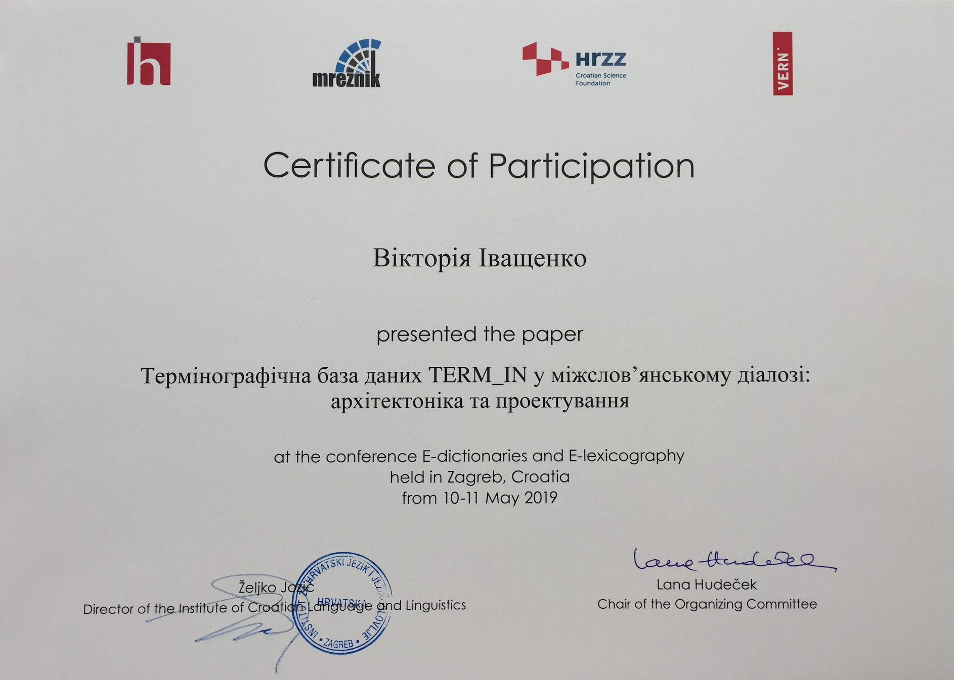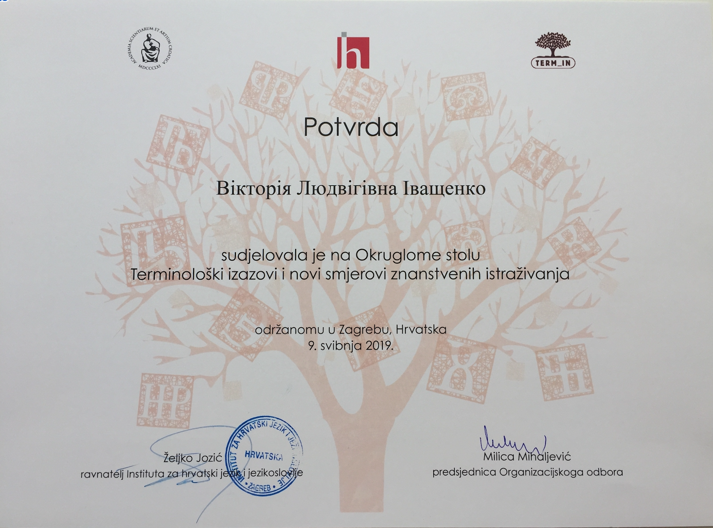 | 54 | «Термінографічна база даних TERM_IN. Слов’янська термінографія = Terminographic Database TERM_IN. Slavic Terminography» | Термінологічна комісія при Міжнародному комітеті славістів | Виграно | !+Сonfirmation_Ivashchenko.pdf | 2020 |