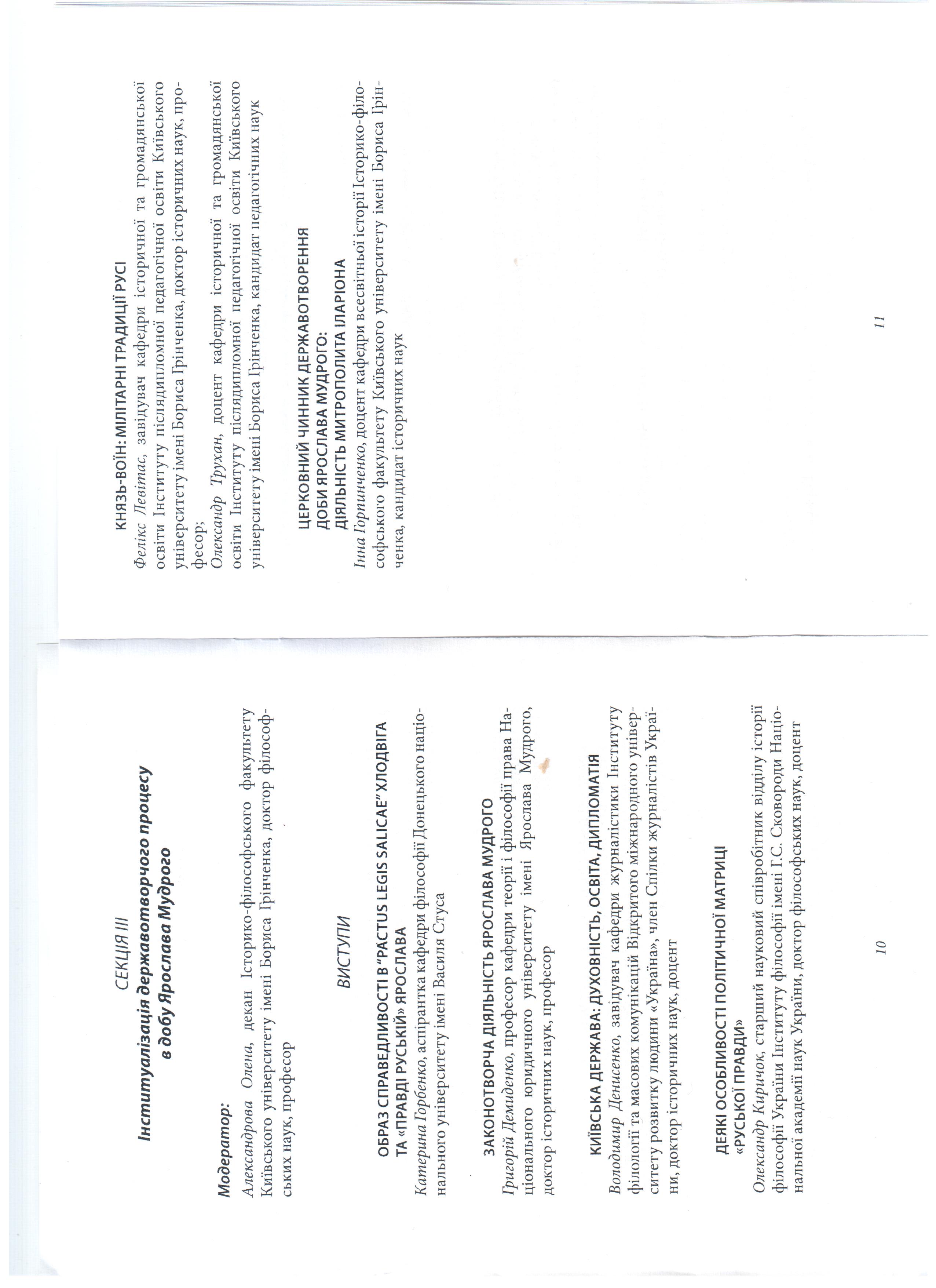 | 4910 | ДОБА ЯРОСЛАВА МУДРОГО: ТИСЯЧОЛІТНІЙ ДОСВІД УКРАЇНСЬКОГО ДЕРЖАВОТВОРЕННЯ | Церковний чинник державотворення доби Ярослава Мудрого: діяльність митрополита Іларіона | м. Київ |