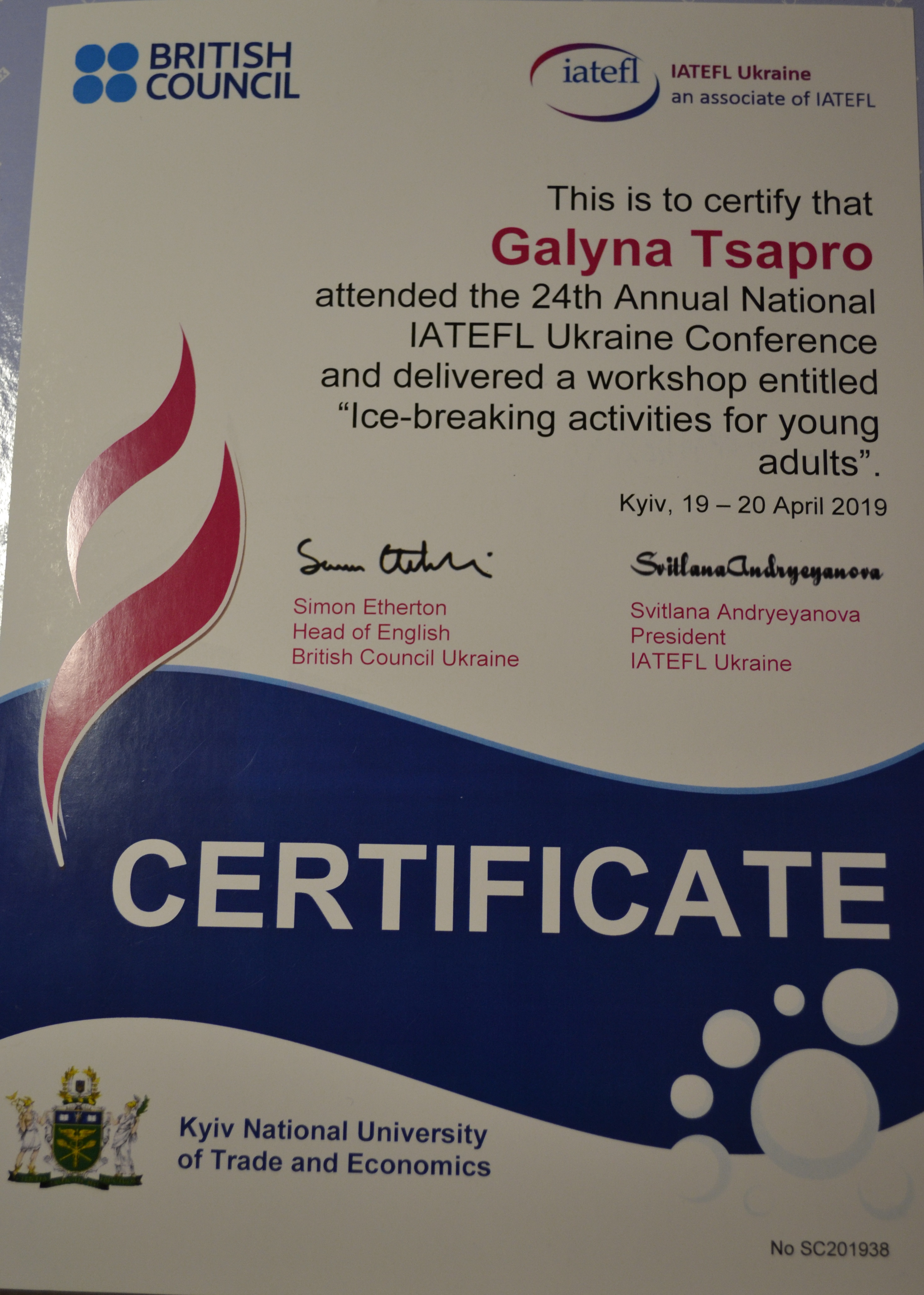 | 4422 | The 24th Annual National IATEFL Ukraine Conference | Ice-breaking activities for young adults | Kyiv |
