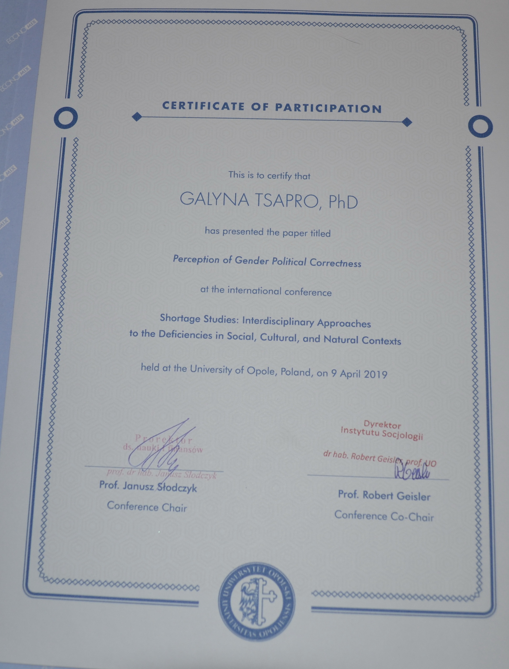 | 4423 | Shortage Studies: Interdisciplinary Approaches to the Deficiencies in Social, Cultural, and Natural Contexts | Perception of Gender Political Correctness | University of Opole, Poland |