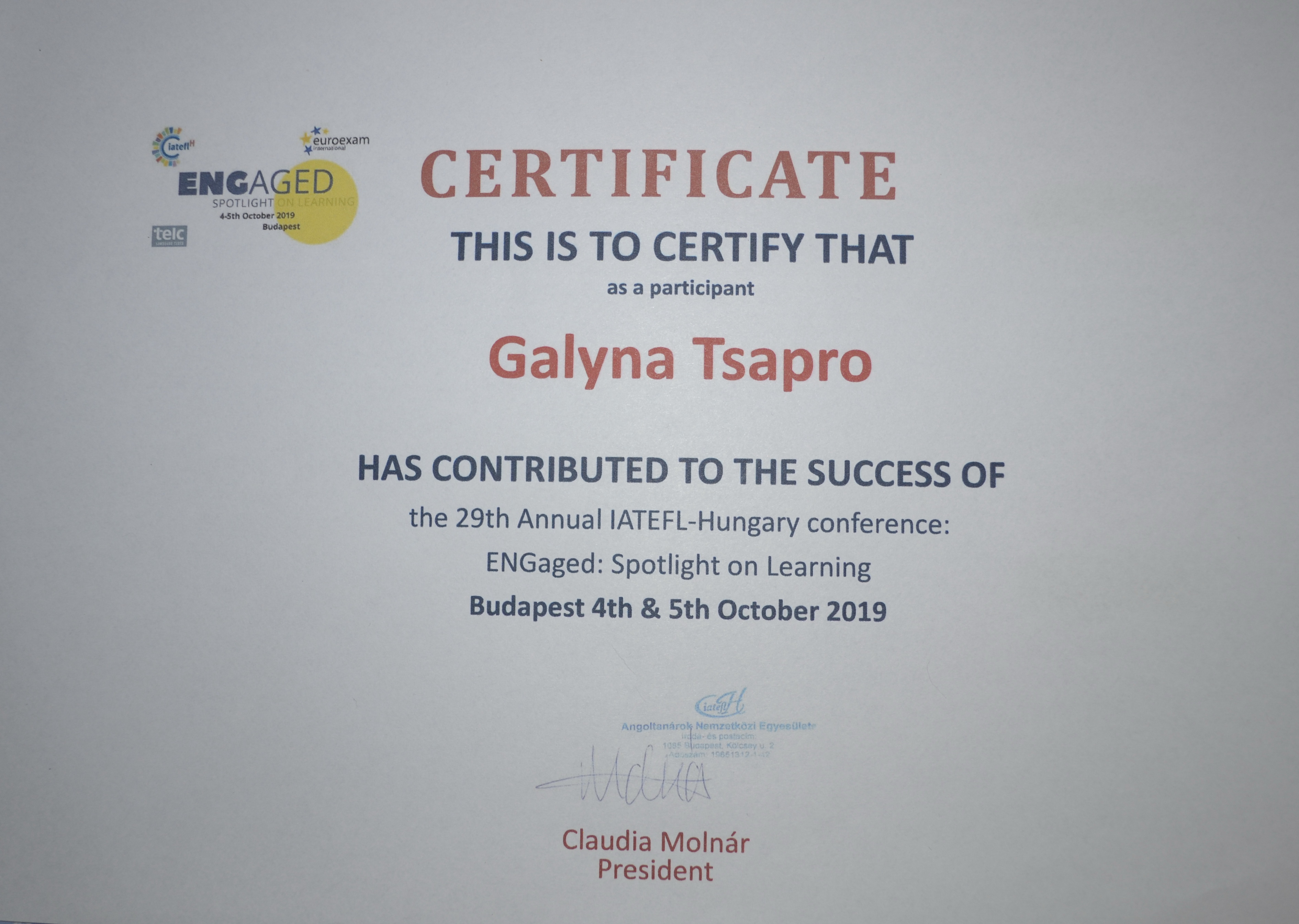 | 4424 | The 29th Annual IATEFL-Hungary conference: ENGaged: Spotlight on Learning | Participant | Budapest, Hungary |